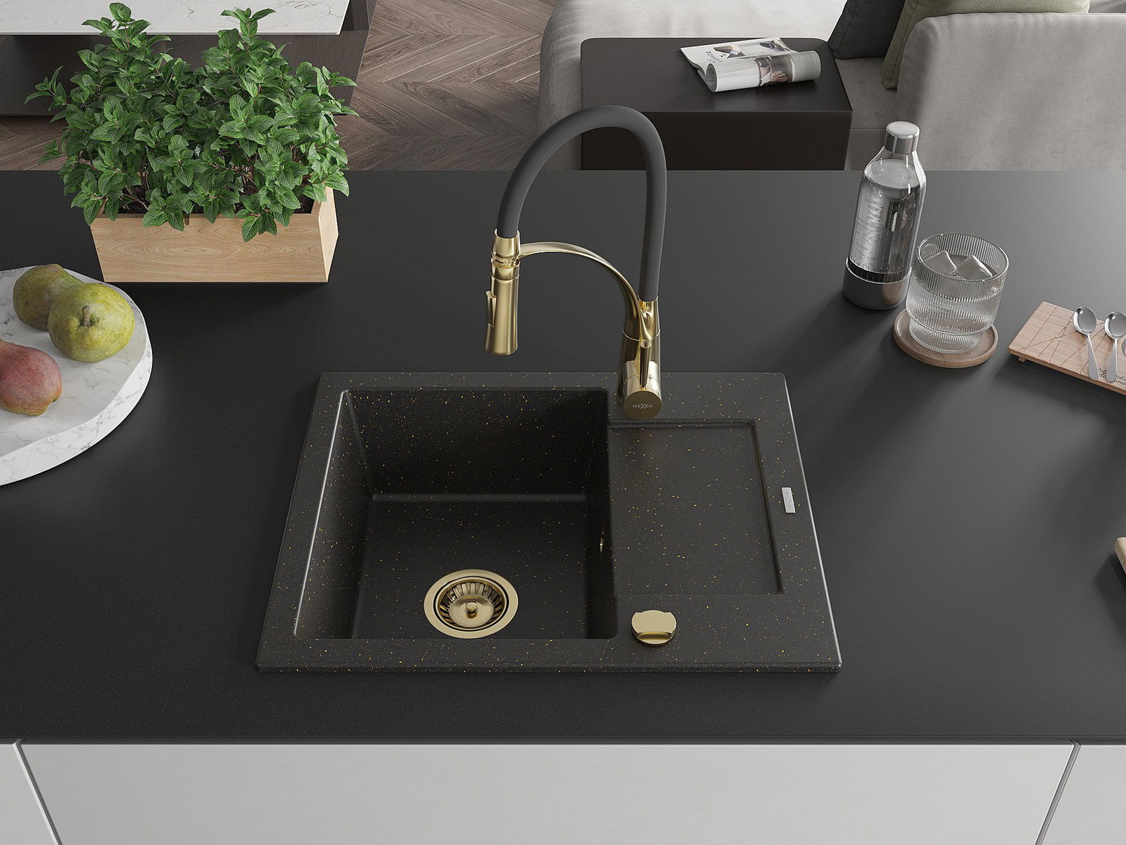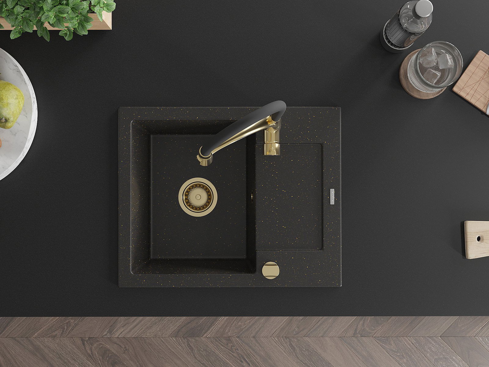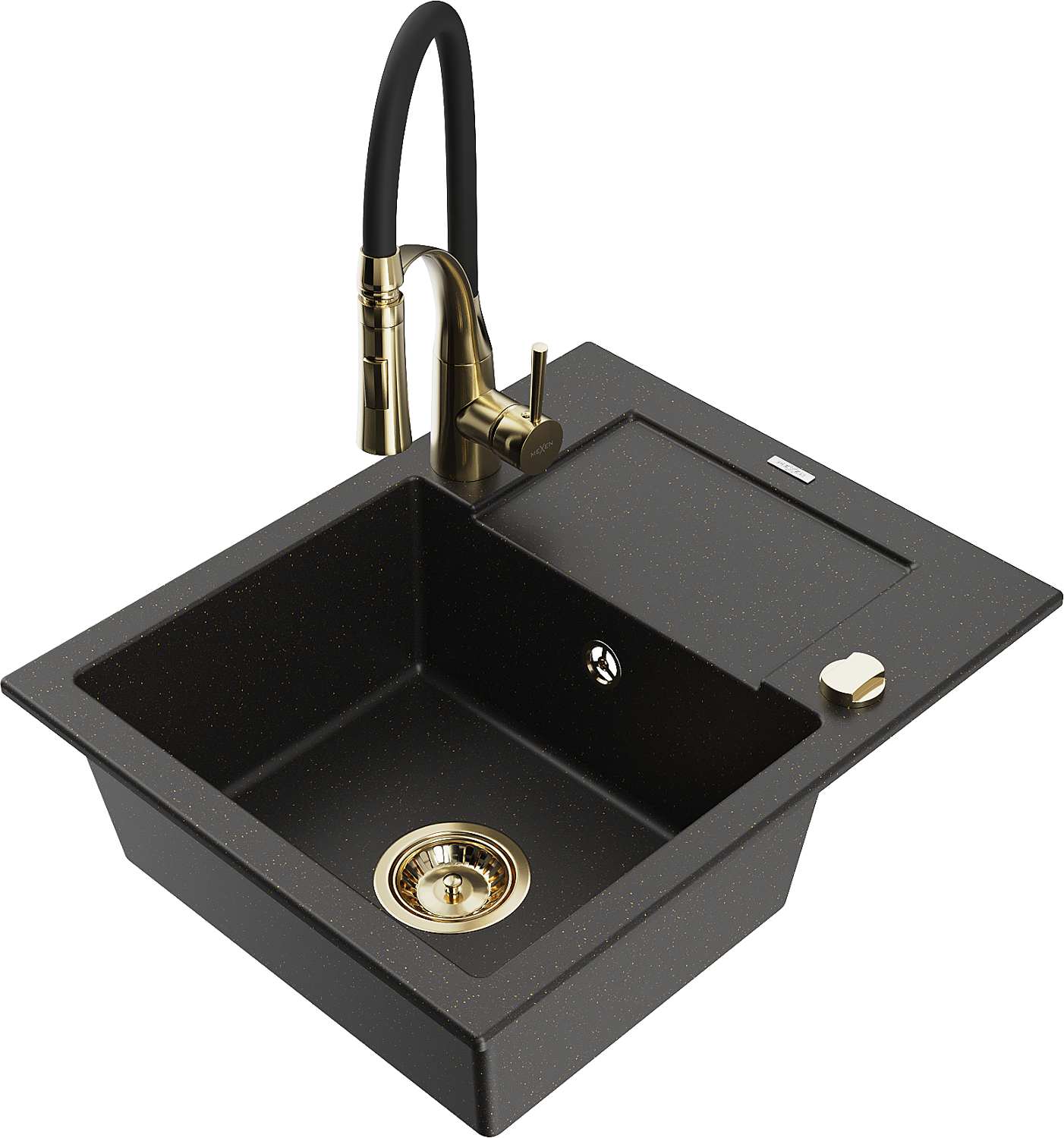 Mexen Enzo гранитна мивка с 1 отделение с отцедник и кухненски смесител Aster,