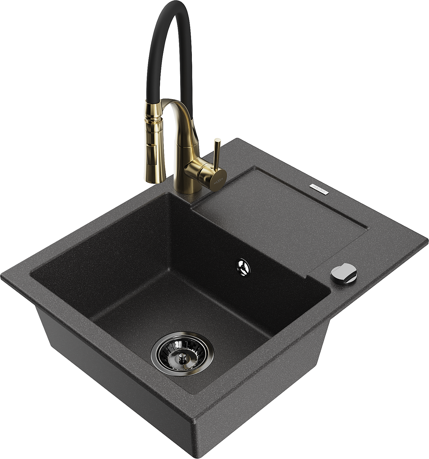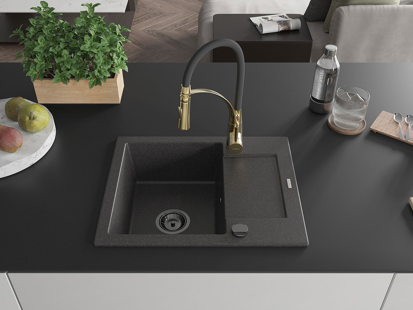 Мивката е направена от висококачествен гранит. Това е елегантно и най -вече практично допълнение към всяка кухня, независимо от нейния стил. Висококачествената и гранитна издръжливост осигуряват много години употреба.