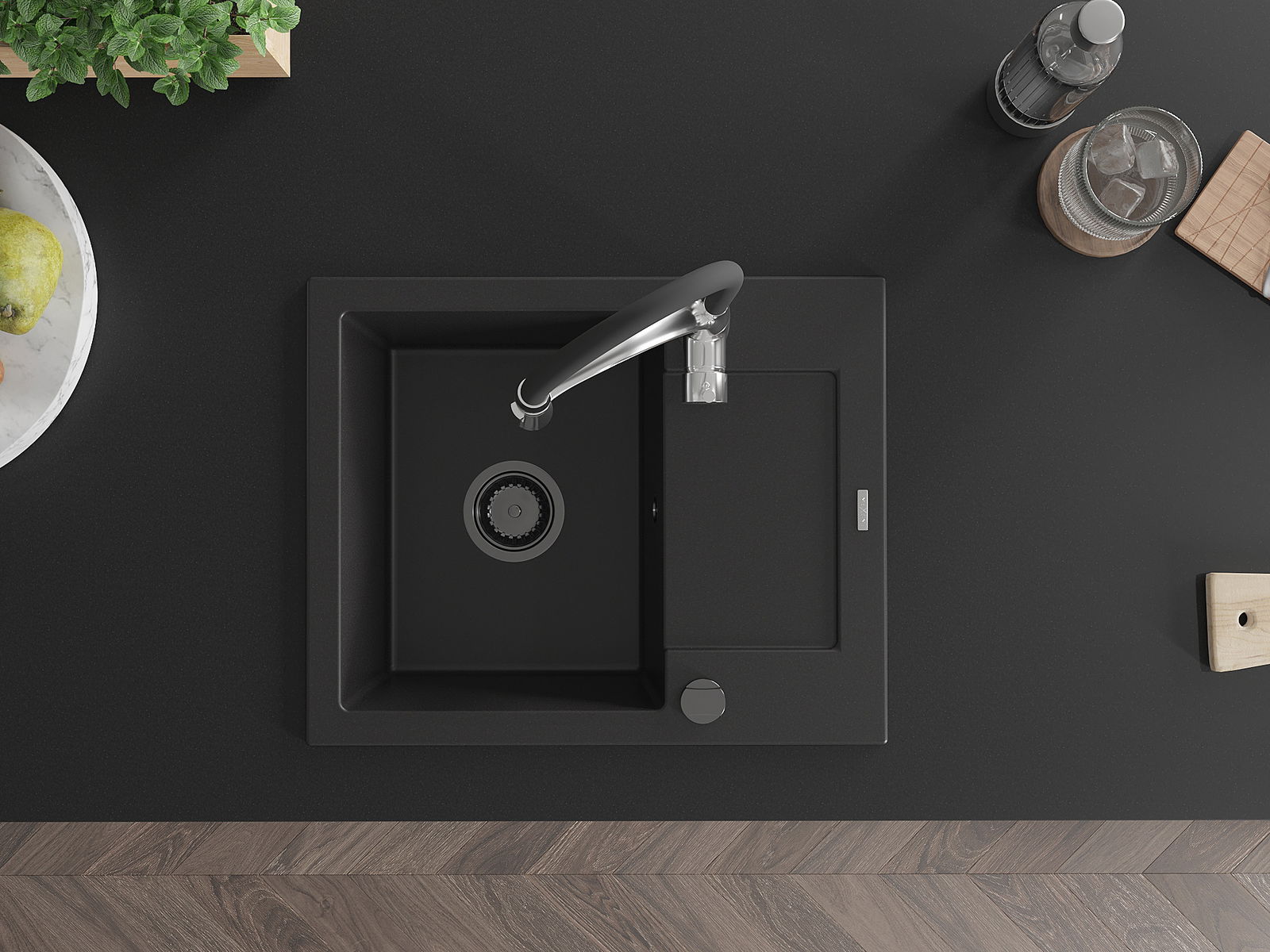 Мивката е направена от висококачествен гранит. Това е елегантно и най -вече практично допълнение към всяка кухня, независимо от нейния стил. Висококачествената и гранитна издръжливост осигуряват много години употреба.