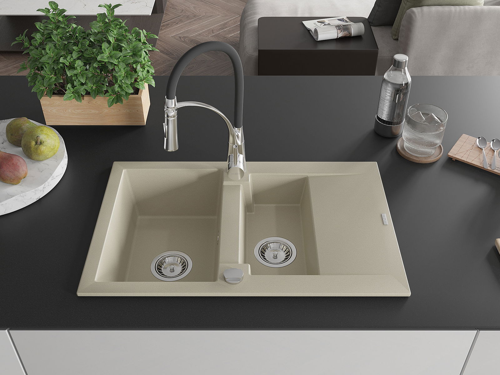 Повърхността на мивката е устойчива на петна и обезцветяване, благодарение на които е лесно да се почиства и запазва цвета си за дълго време. Естетически и практически допълващи всяка кухня.