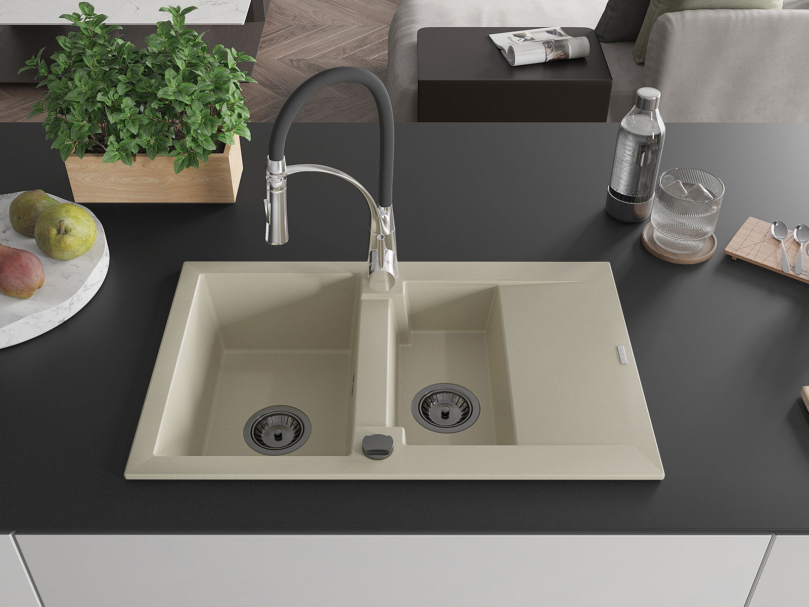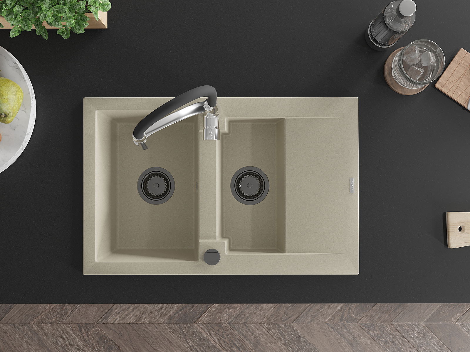 Повърхността на мивката е устойчива на петна и обезцветяване, благодарение на които е лесно да се почиства и запазва цвета си за дълго време. Естетически и практически допълващи всяка кухня.