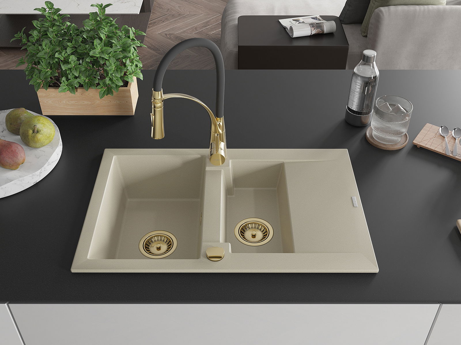 Мивката е направена от висококачествен гранит. Това е елегантно и най -вече практично допълнение към всяка кухня, независимо от нейния стил. Висококачествената и гранитна издръжливост осигуряват много години употреба.
