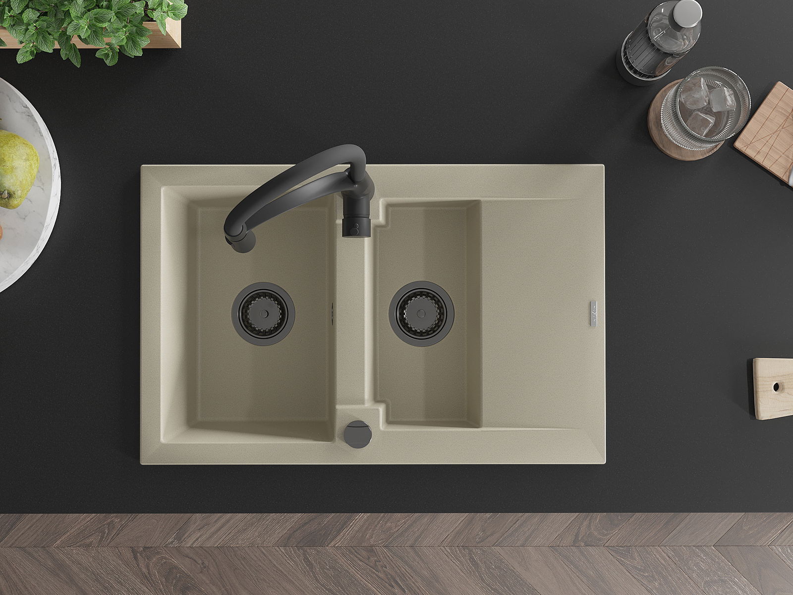 Повърхността на мивката е устойчива на петна и обезцветяване, благодарение на които е лесно да се почиства и запазва цвета си за дълго време. Естетически и практически допълващи всяка кухня.