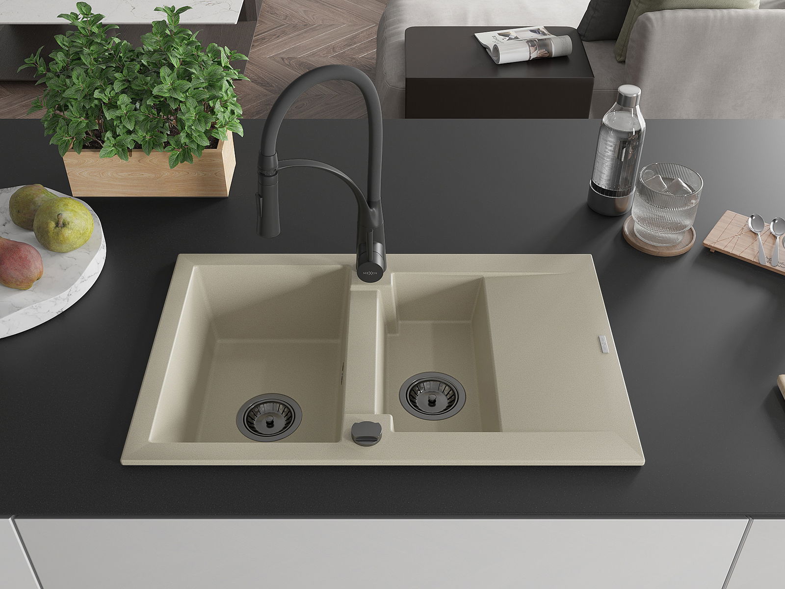 Мивката е направена от висококачествен гранит. Това е елегантно и най -вече практично допълнение към всяка кухня, независимо от нейния стил. Висококачествената и гранитна издръжливост осигуряват много години употреба.