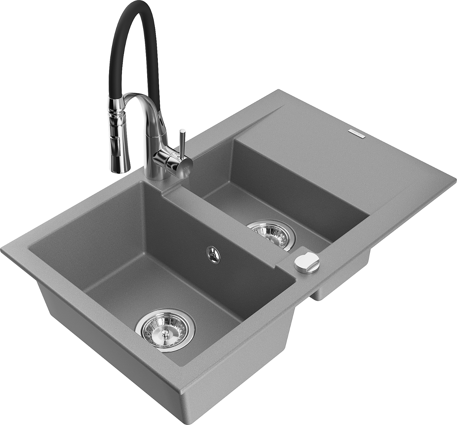 Мехен Gaspar гранитна мивка 1,5-камерна с оттич и кухненски смесител Aster, сив - 6507-71-73450-07