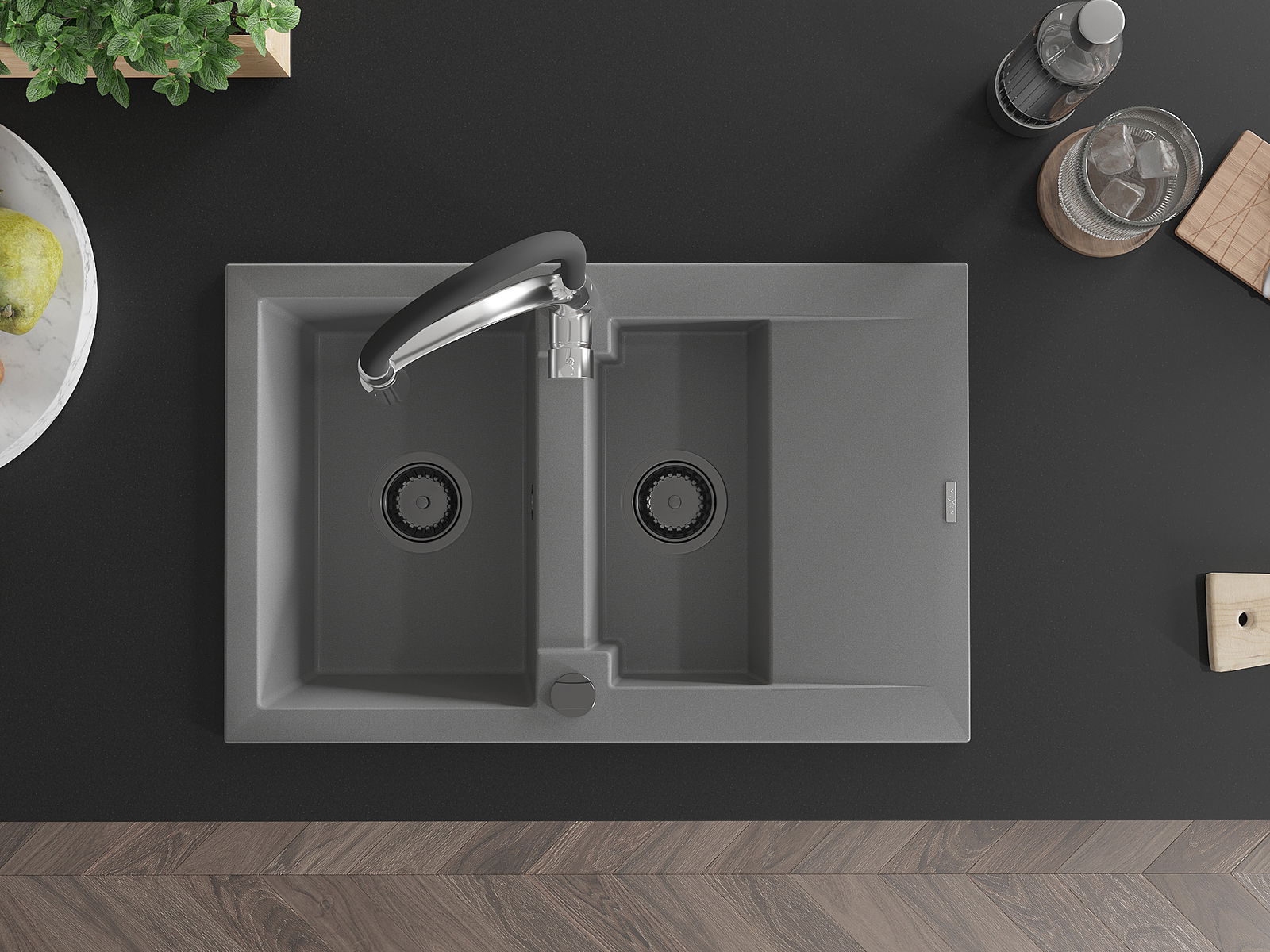 Мивката е направена от висококачествен гранит. Това е елегантно и най -вече практично допълнение към всяка кухня, независимо от нейния стил. Висококачествената и гранитна издръжливост осигуряват много години употреба.