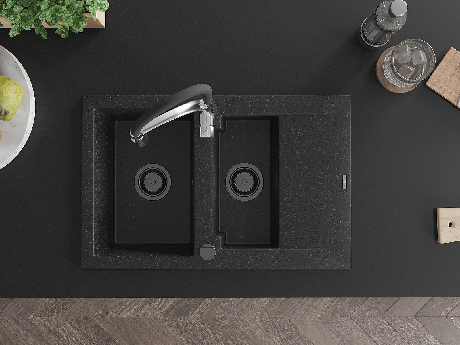 Мивката е направена от висококачествен гранит. Това е елегантно и най -вече практично допълнение към всяка кухня, независимо от нейния стил. Висококачествената и гранитна издръжливост осигуряват много години употреба.