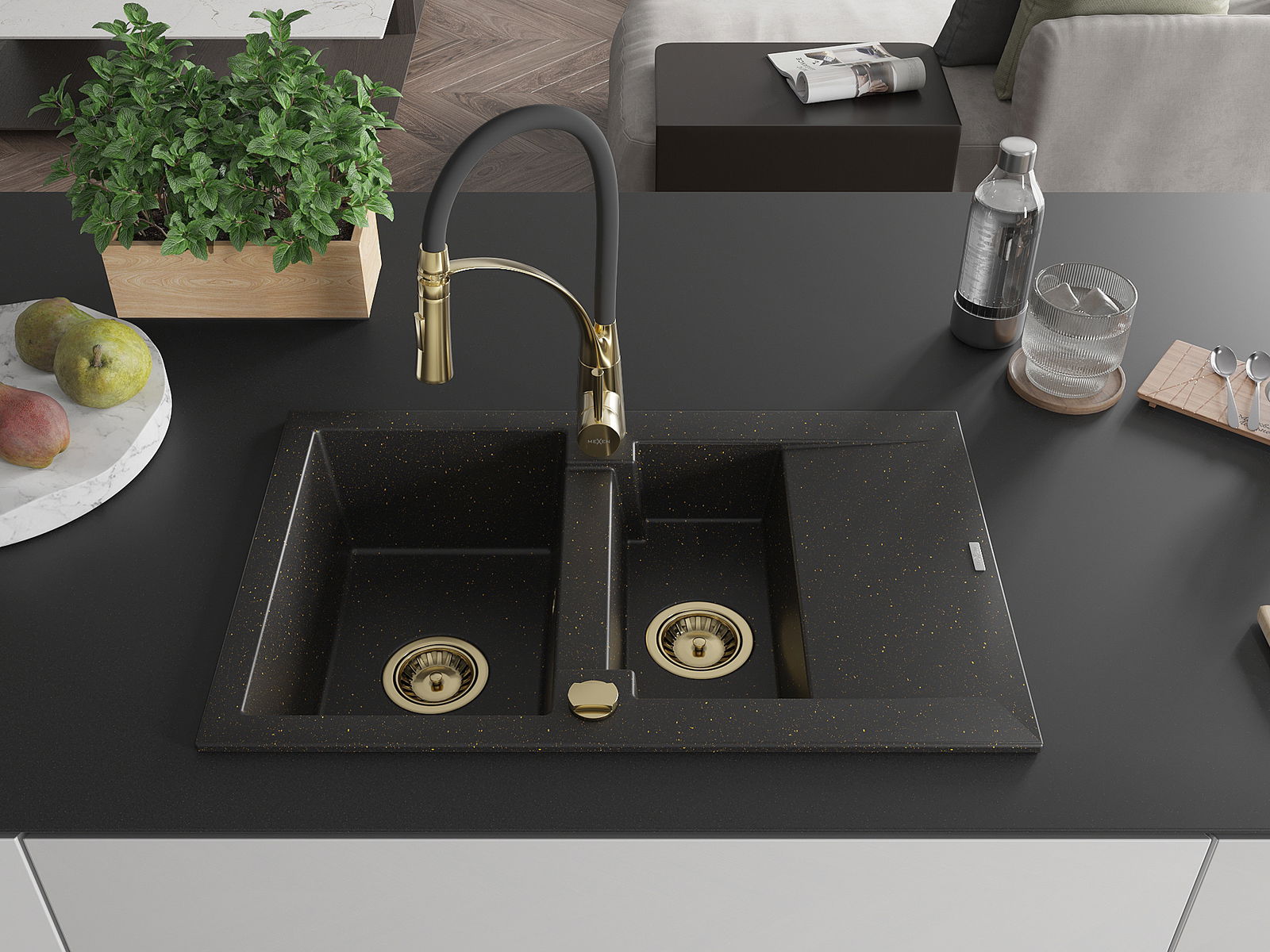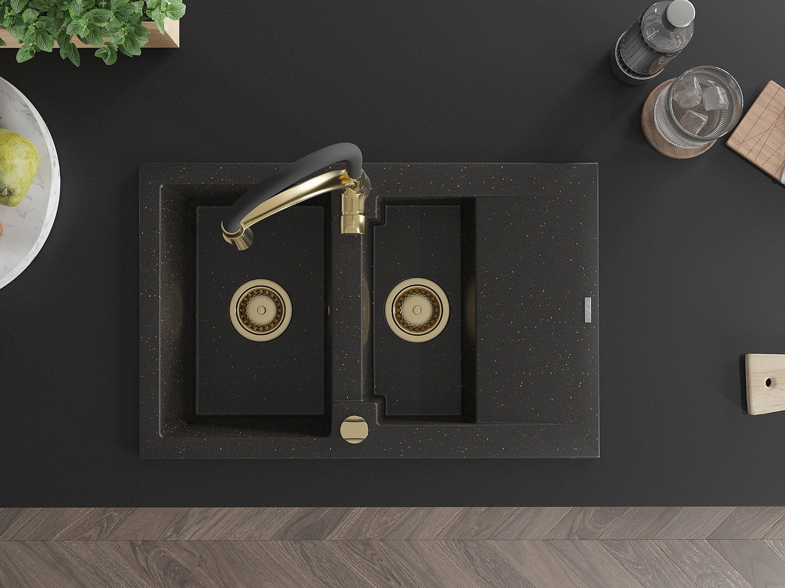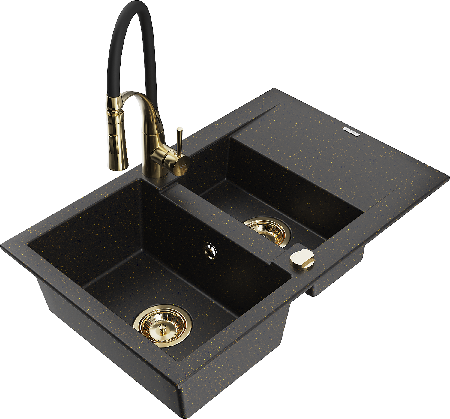 Mexen Gaspar гранитна мивка 1,5 камери с отцедник и кухненски смесител Aster,