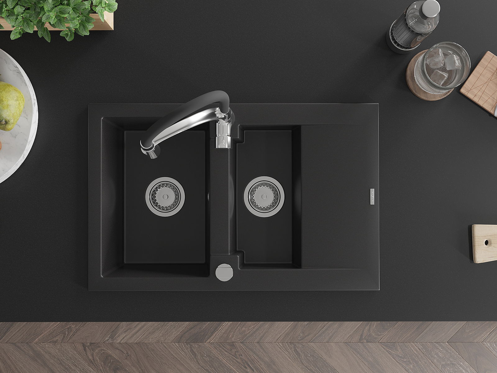Мивката е направена от висококачествен гранит. Това е елегантно и най -вече практично допълнение към всяка кухня, независимо от нейния стил. Висококачествената и гранитна издръжливост осигуряват много години употреба.