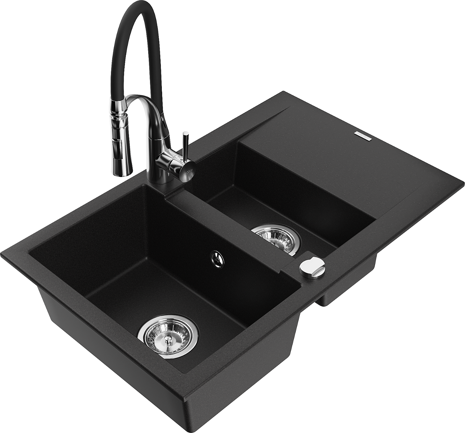 Mexen Gaspar кухненска мивка с 1,5 корита от гранит с отцедник и кухненски смесител Aster, черен - 6507-77-73450-07