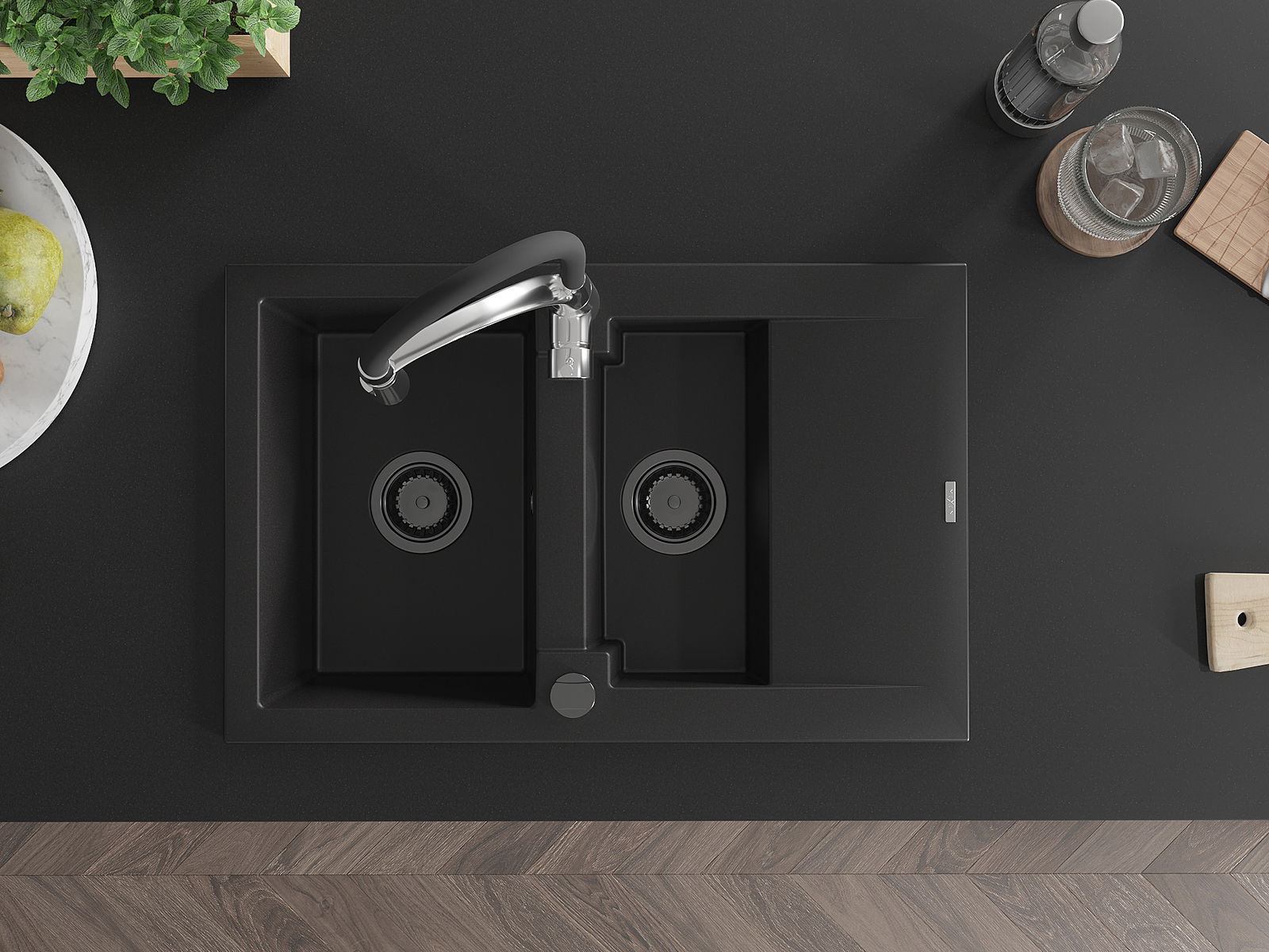 Mexen Gaspar гранитна мивка с 1,5 камери с отцедник и кухненски смесител Aster, черен - 6507-77-73450-07-B