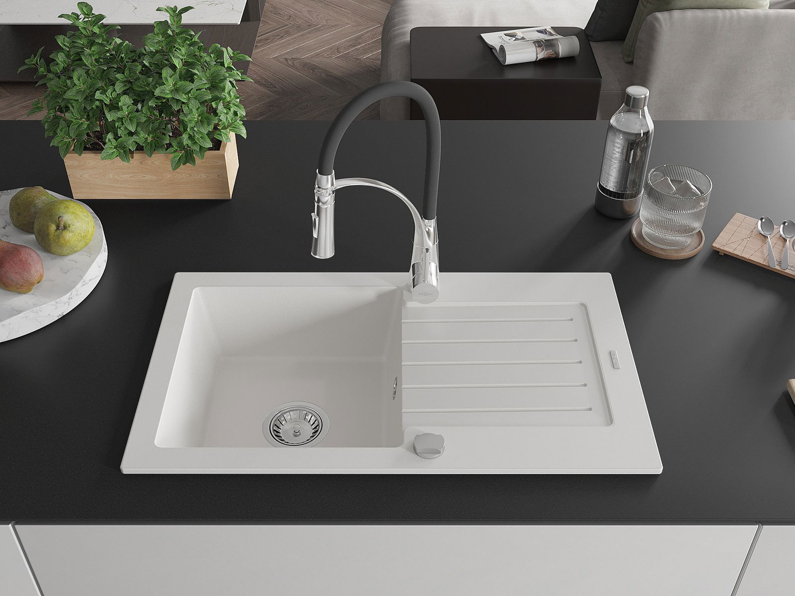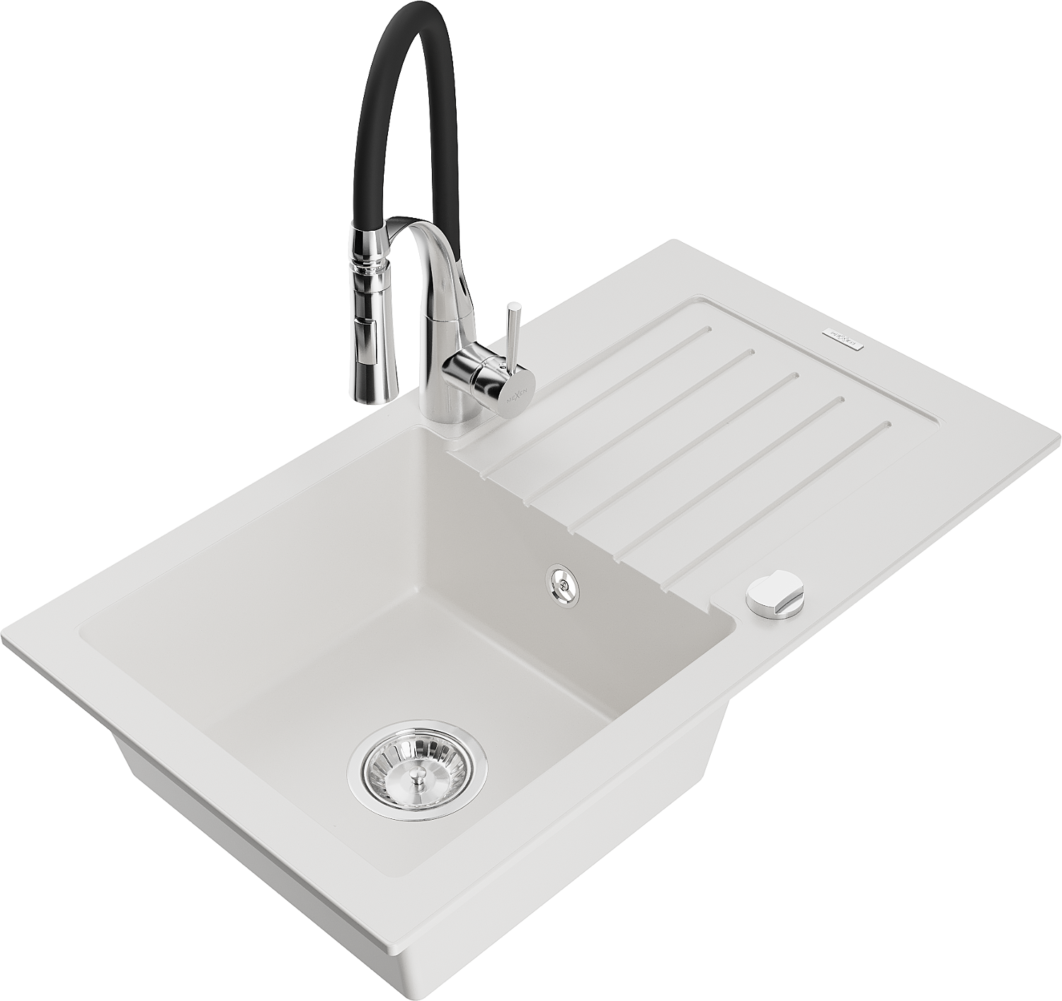 Mexen Pablo гранитна мивка с 1 отделение, с изсушител и кухненски смесител