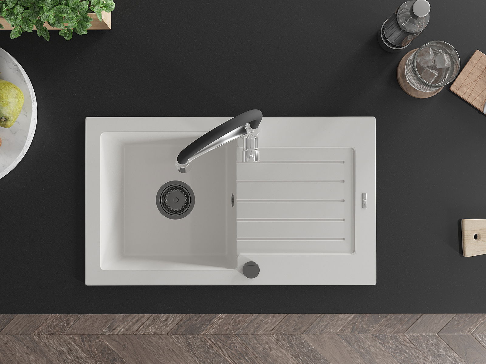 Mexen Pablo гранитна мивка с 1 отделение с отцеждаш и кухня смесител Aster, бял - 6510-20-73450-07-B