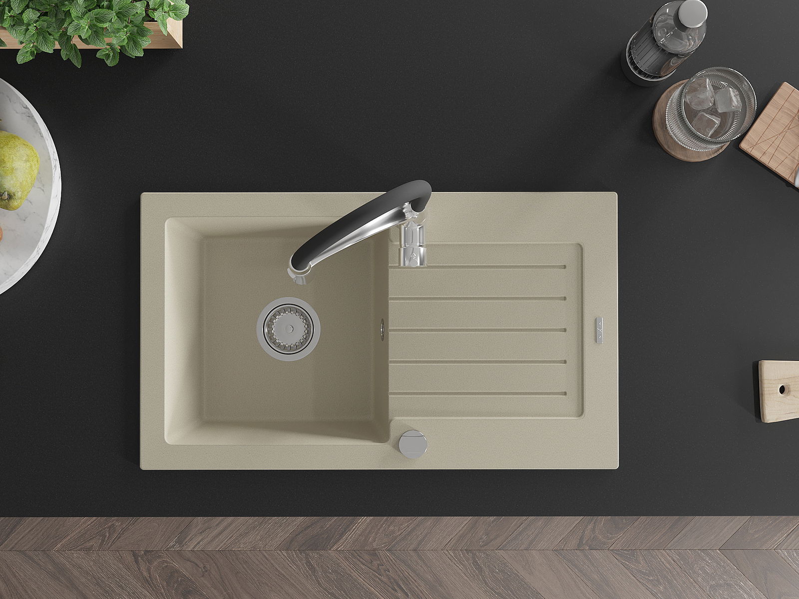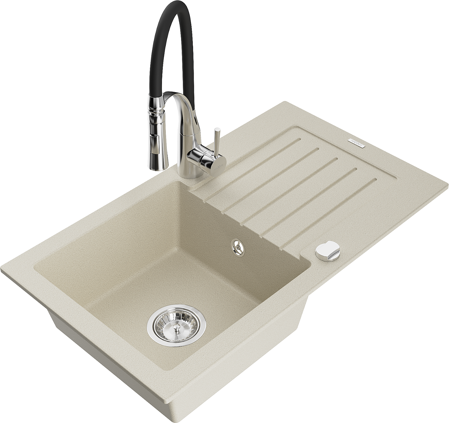 Mexen Pablo гранитна кухненска мивка с 1 корито с отцедник и кухненски смесител Aster, бежов - 6510-69-73450-07