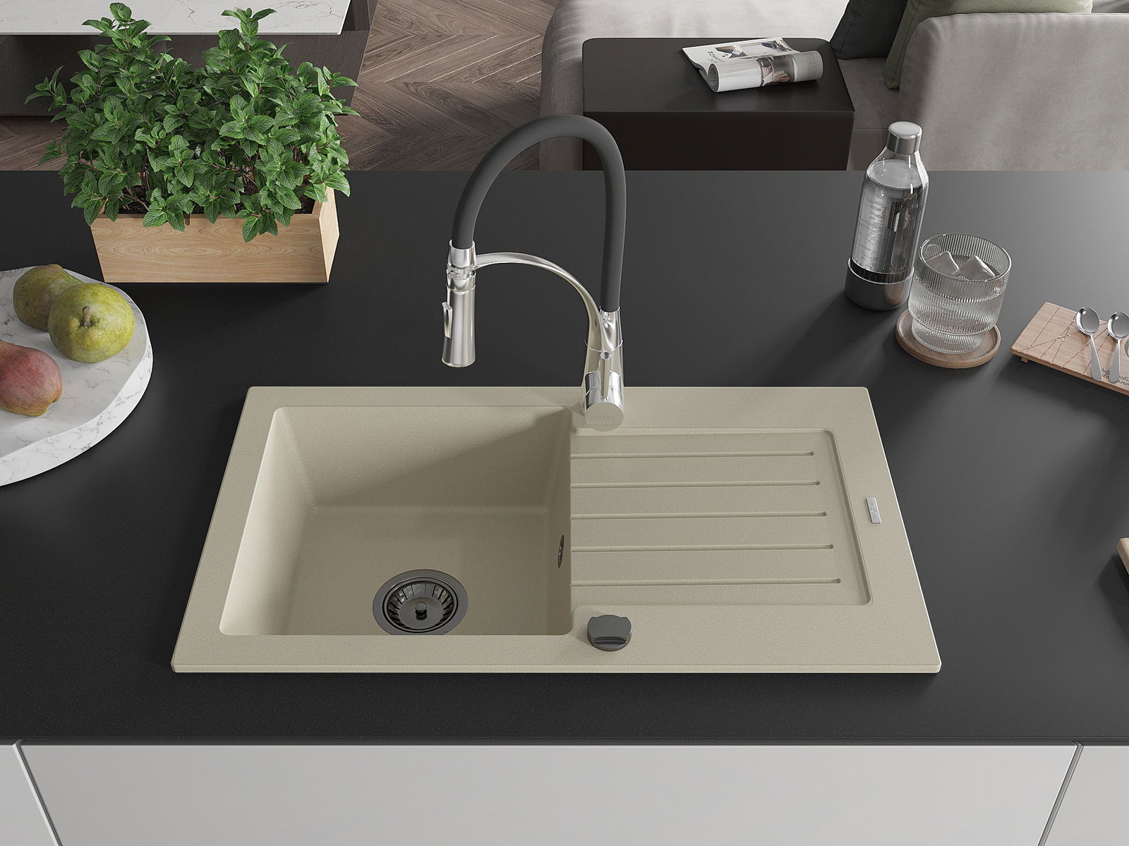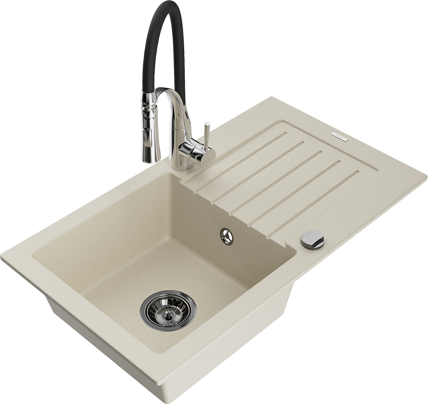 Mexen Pablo гранитна мивка с 1 корито с отцедник и кухненски смесител Aster, бежова - 6510-69-73450-07-B