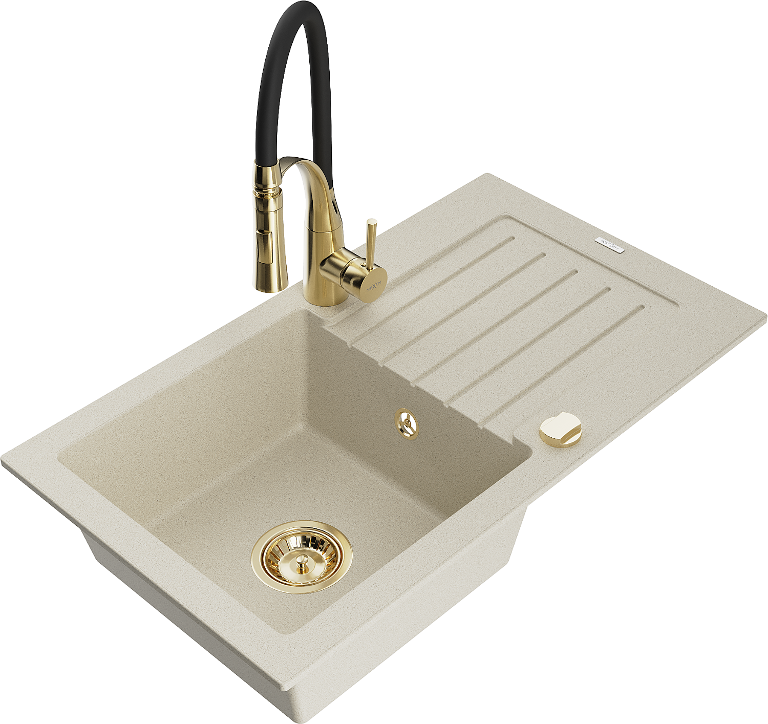 Mexen Pablo гранитна мивка с една камера с отцедник и кухненски смесител