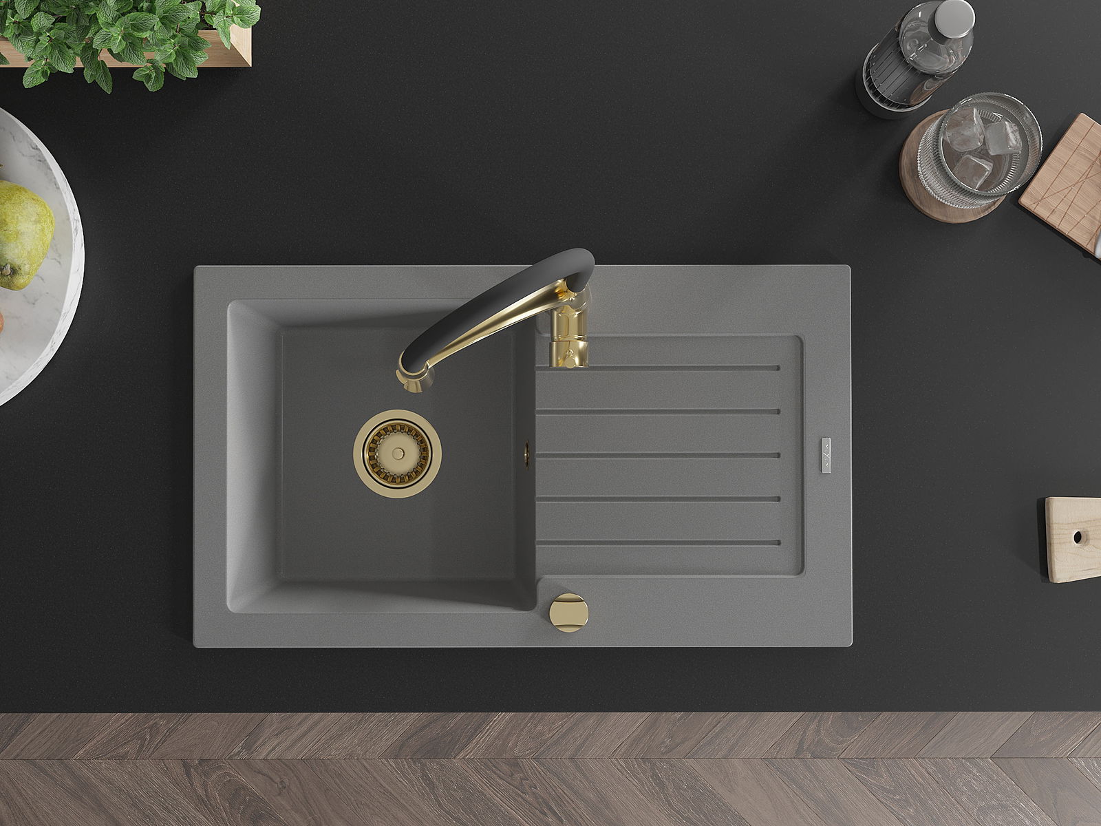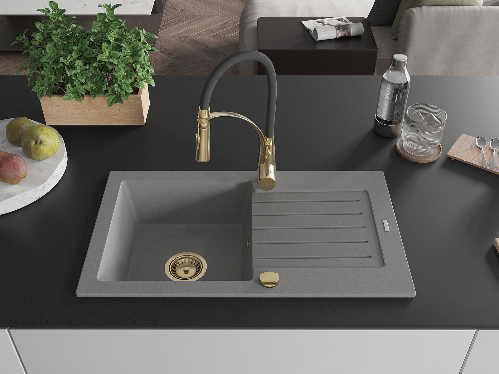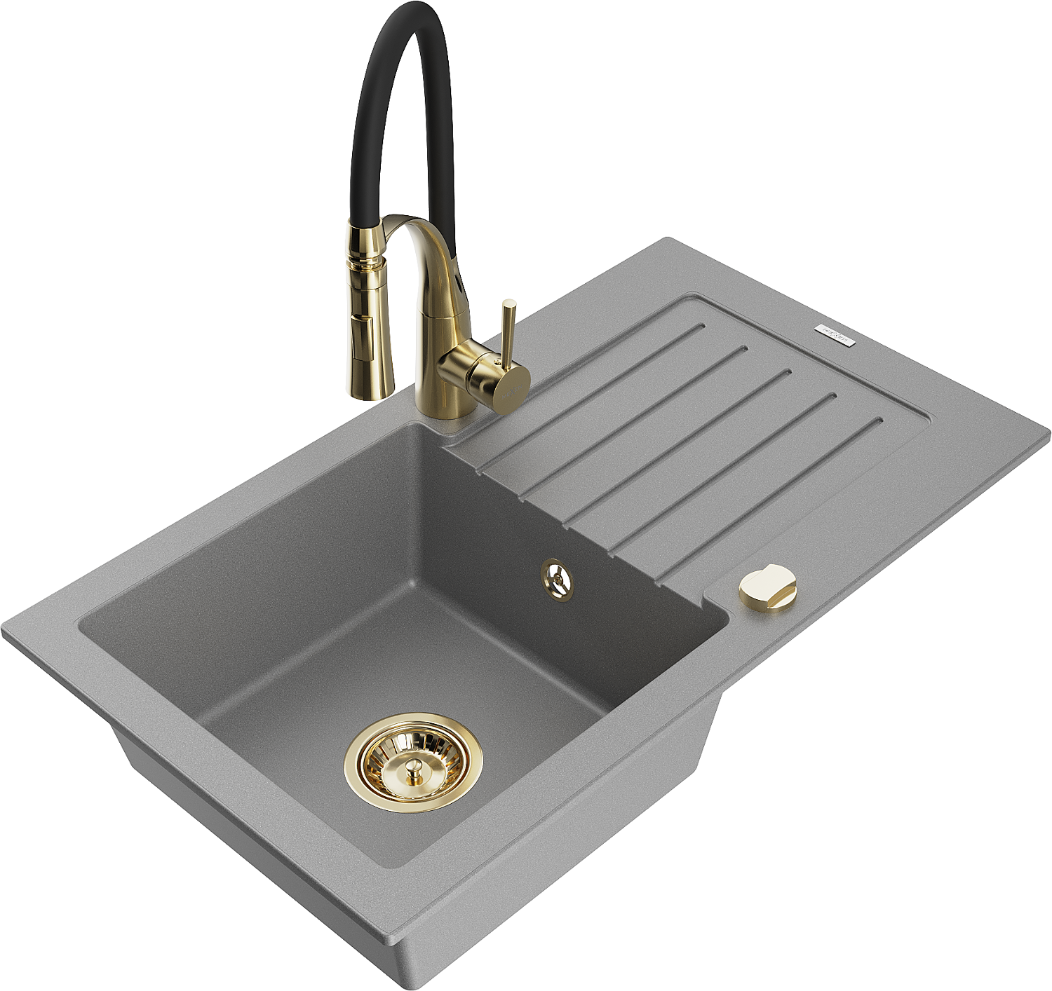 Mexen Pablo мивка от гранит с 1 отделение с отцедник и кухненски смесител Aster, сив - 6510-71-73450-57-G