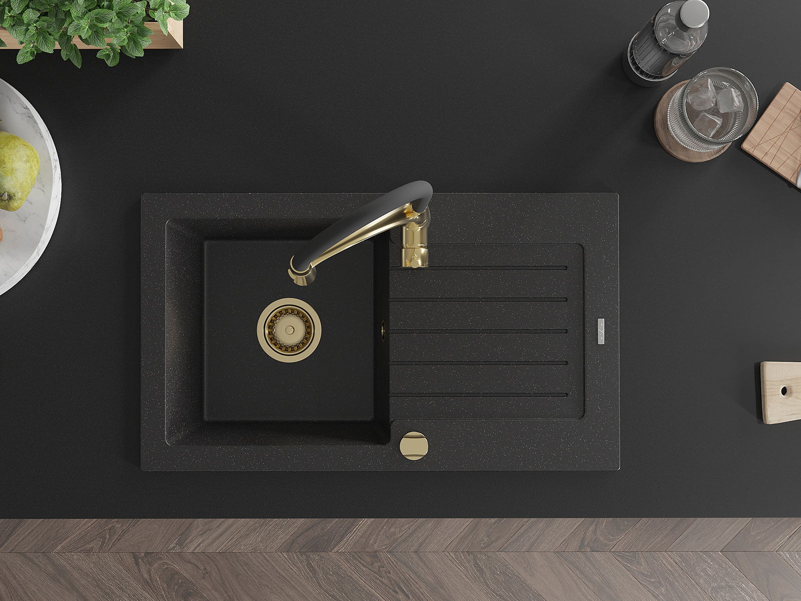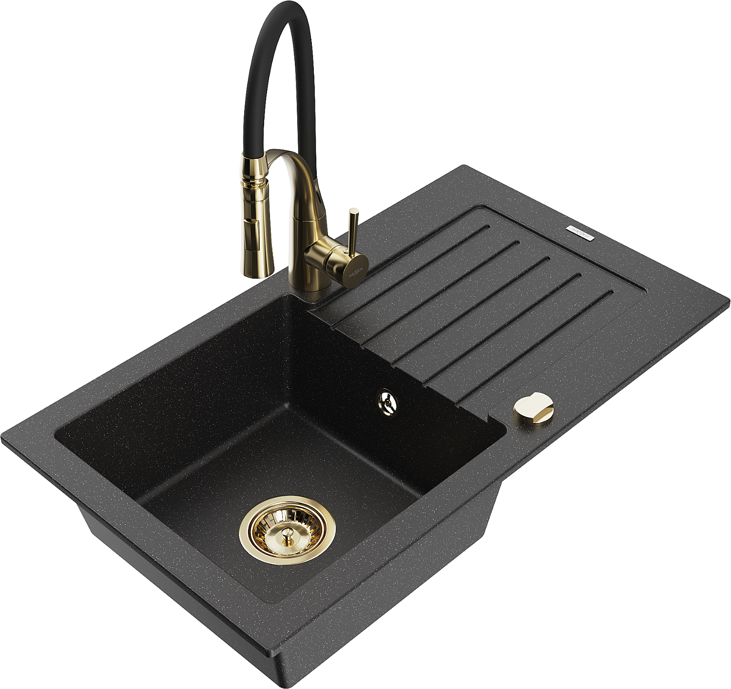Mexen Pablo гранитна мивка с 1 корито, изцедник и кухненски смесител Aster, черен/сребрист металик - 6510-73-73450-57-G