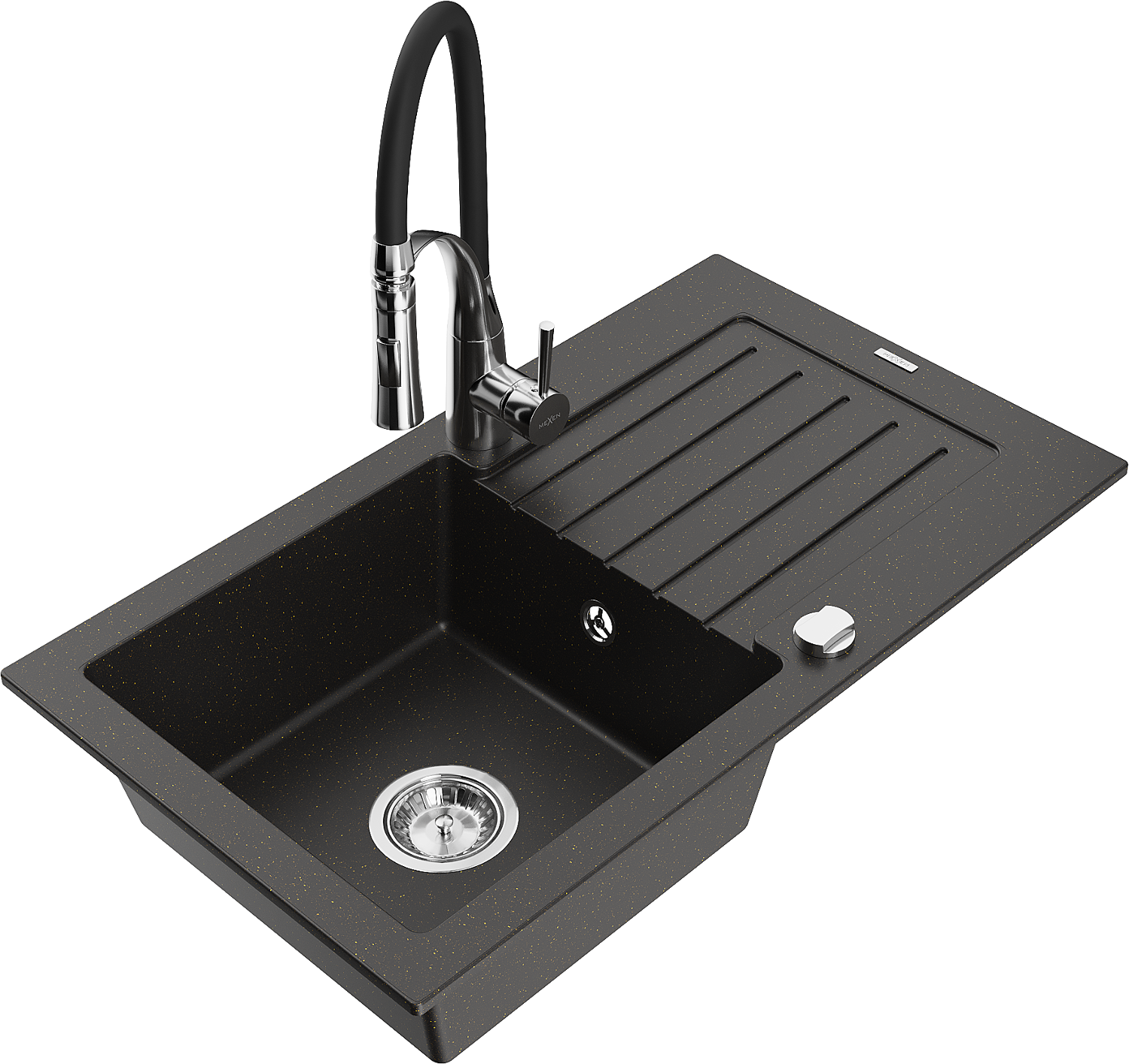 Mexen Pablo гранитна мивка с 1 отделение със сушилник и кухненски смесител