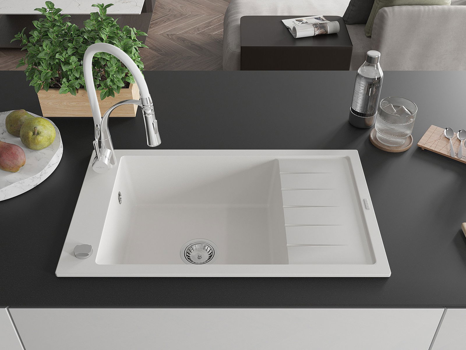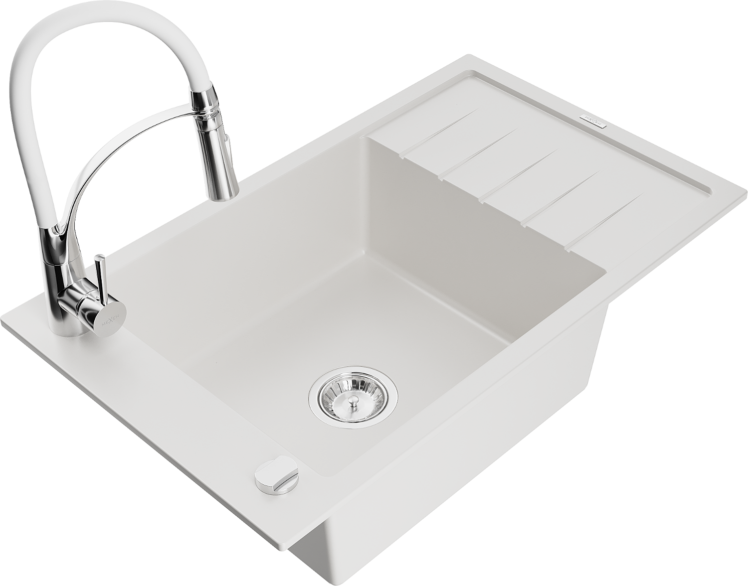 Mexen Elias гранитна мивка с 1 корито с отцедище и кухнянски смесител Aster,