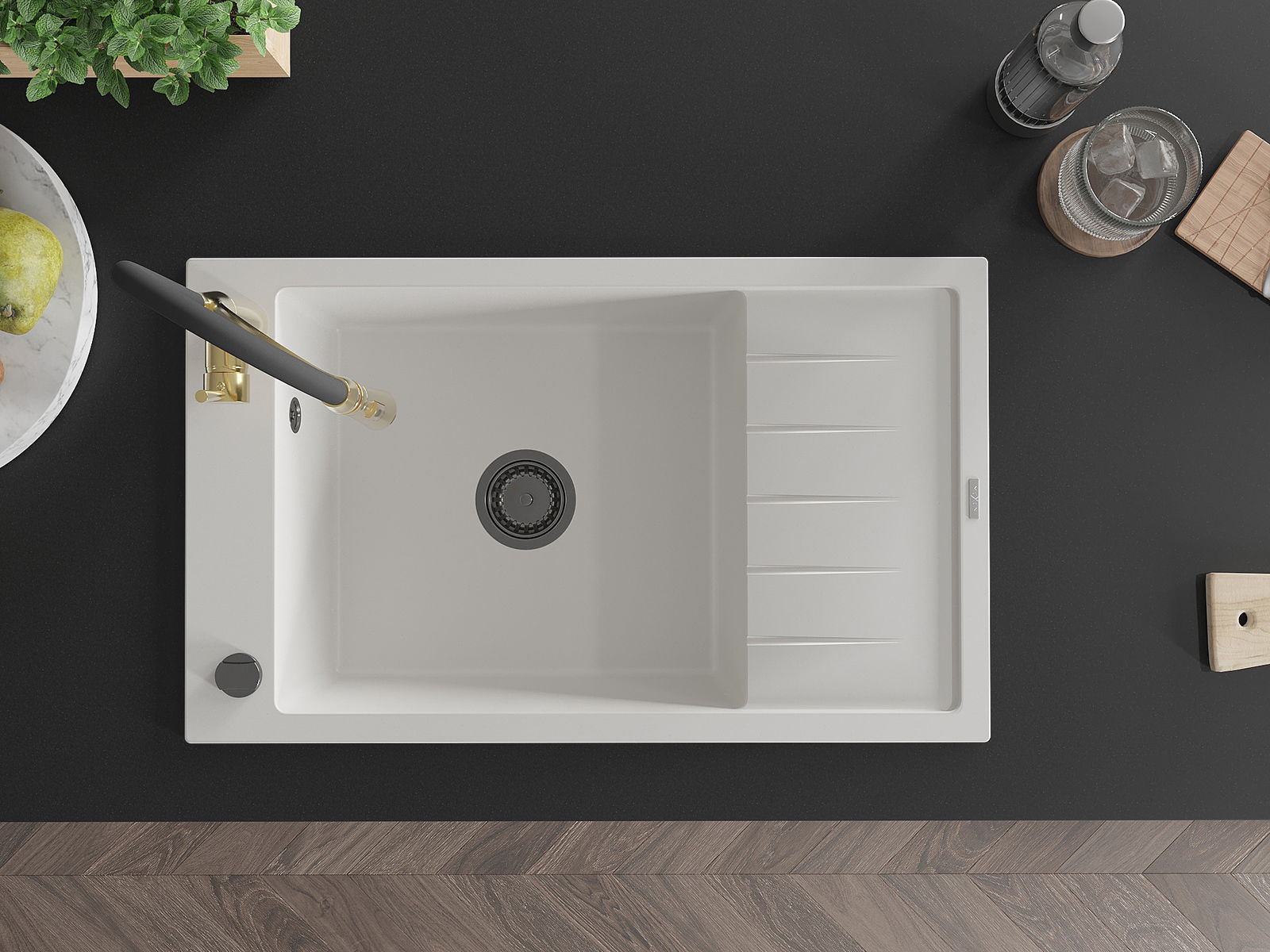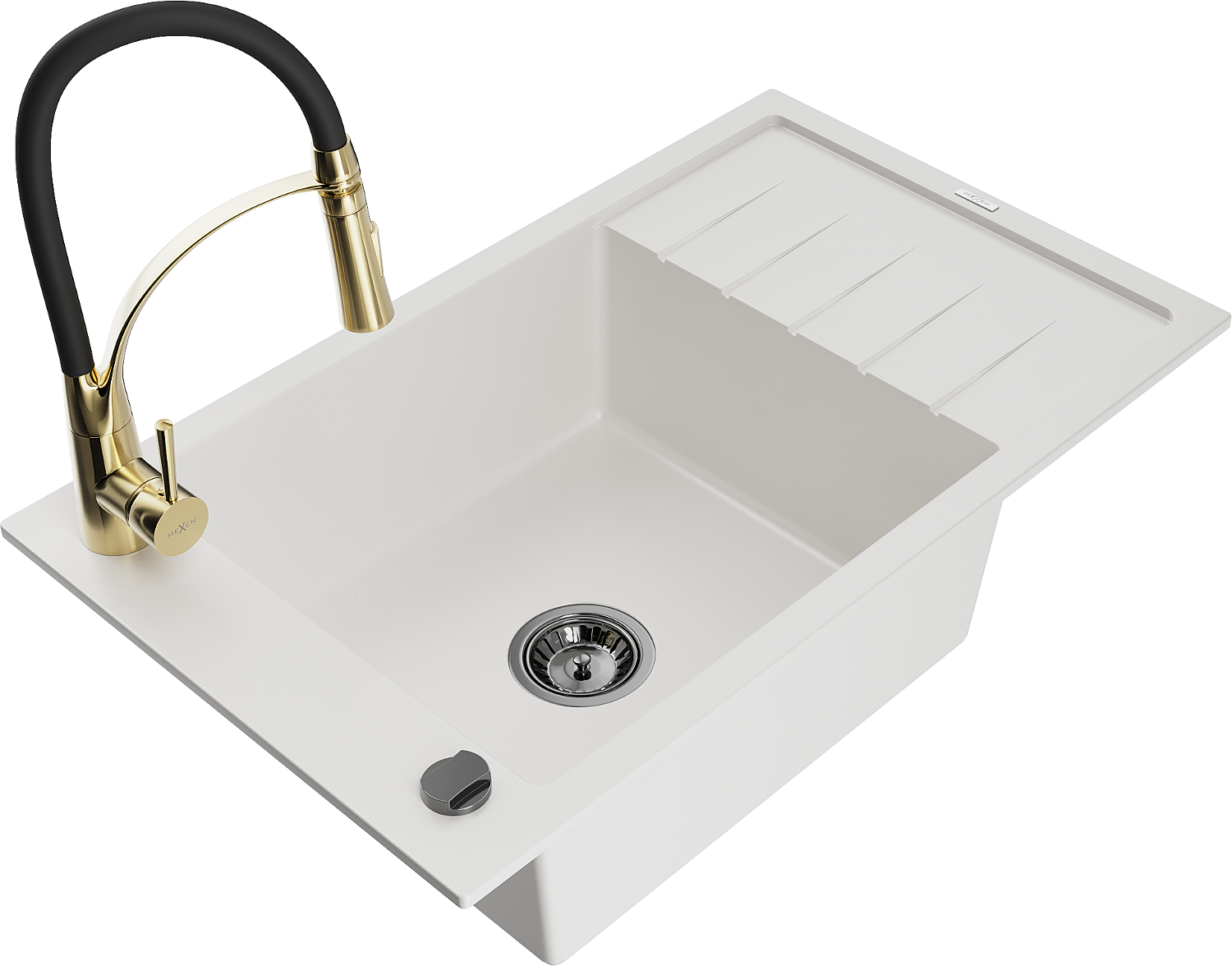 Mexen Elias гранитна мивка с 1 отделение с отцедник и кухненски смесител Aster, бял - 6511-20-73450-57-B