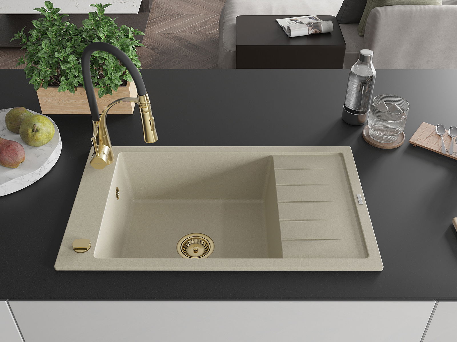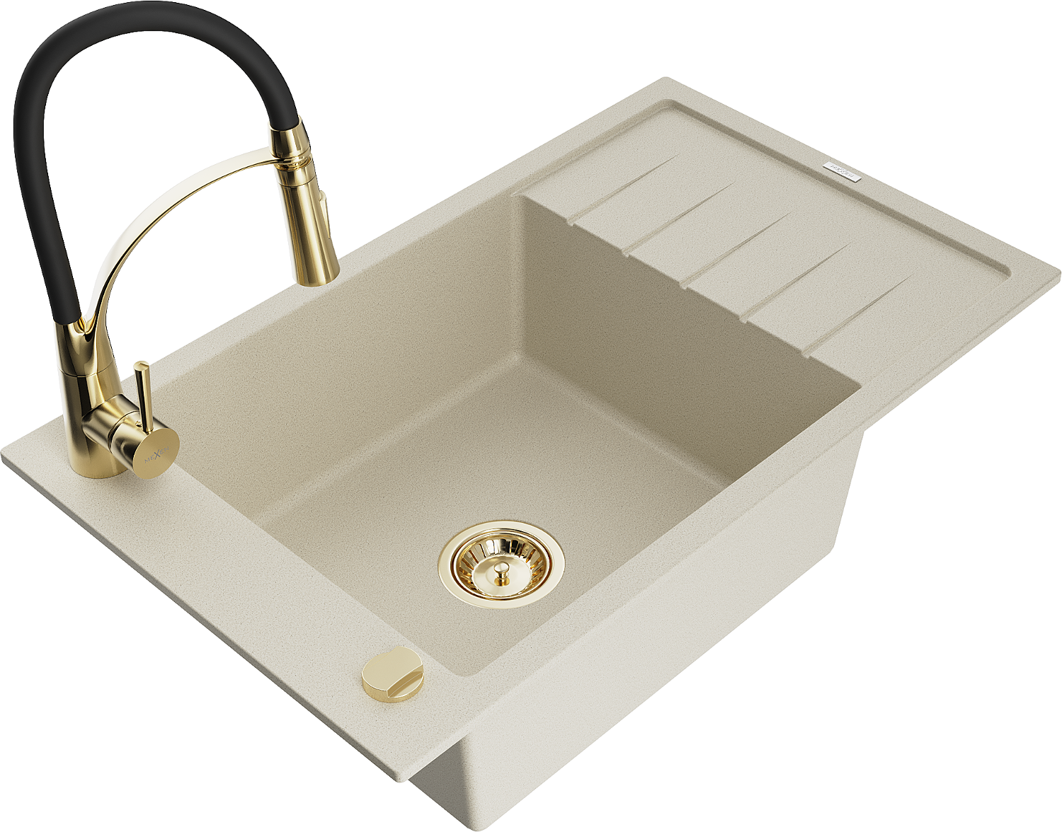 Mexen Elias мивка от гранит с 1 отделение с отцедник и кухненски смесител Aster, бежов - 6511-69-73450-57-G