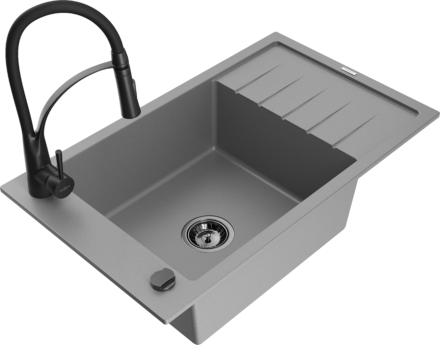 Mexen Elias гранитна мивка с 1 отделение с отцедник и кухненски смесител Aster, сив - 6511-71-73450-70-B