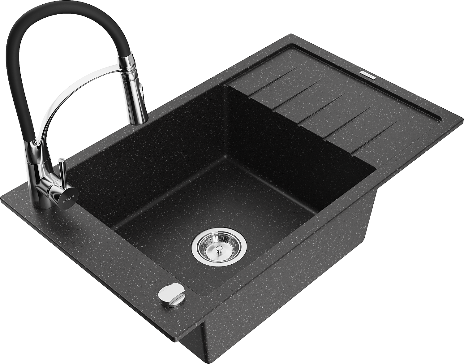 Мивката е направена от висококачествен гранит. Това е елегантно и най -вече практично допълнение към всяка кухня, независимо от нейния стил. Висококачествената и гранитна издръжливост осигуряват много години употреба.