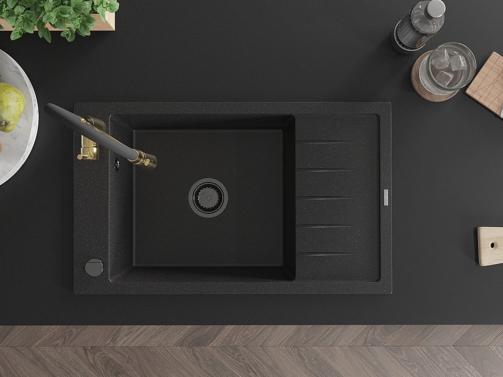 Мивката е направена от висококачествен гранит. Това е елегантно и най -вече практично допълнение към всяка кухня, независимо от нейния стил. Висококачествената и гранитна издръжливост осигуряват много години употреба.
