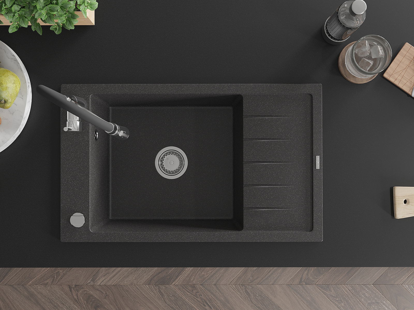 Мивката е направена от висококачествен гранит. Това е елегантно и най -вече практично допълнение към всяка кухня, независимо от нейния стил. Висококачествената и гранитна издръжливост осигуряват много години употреба.