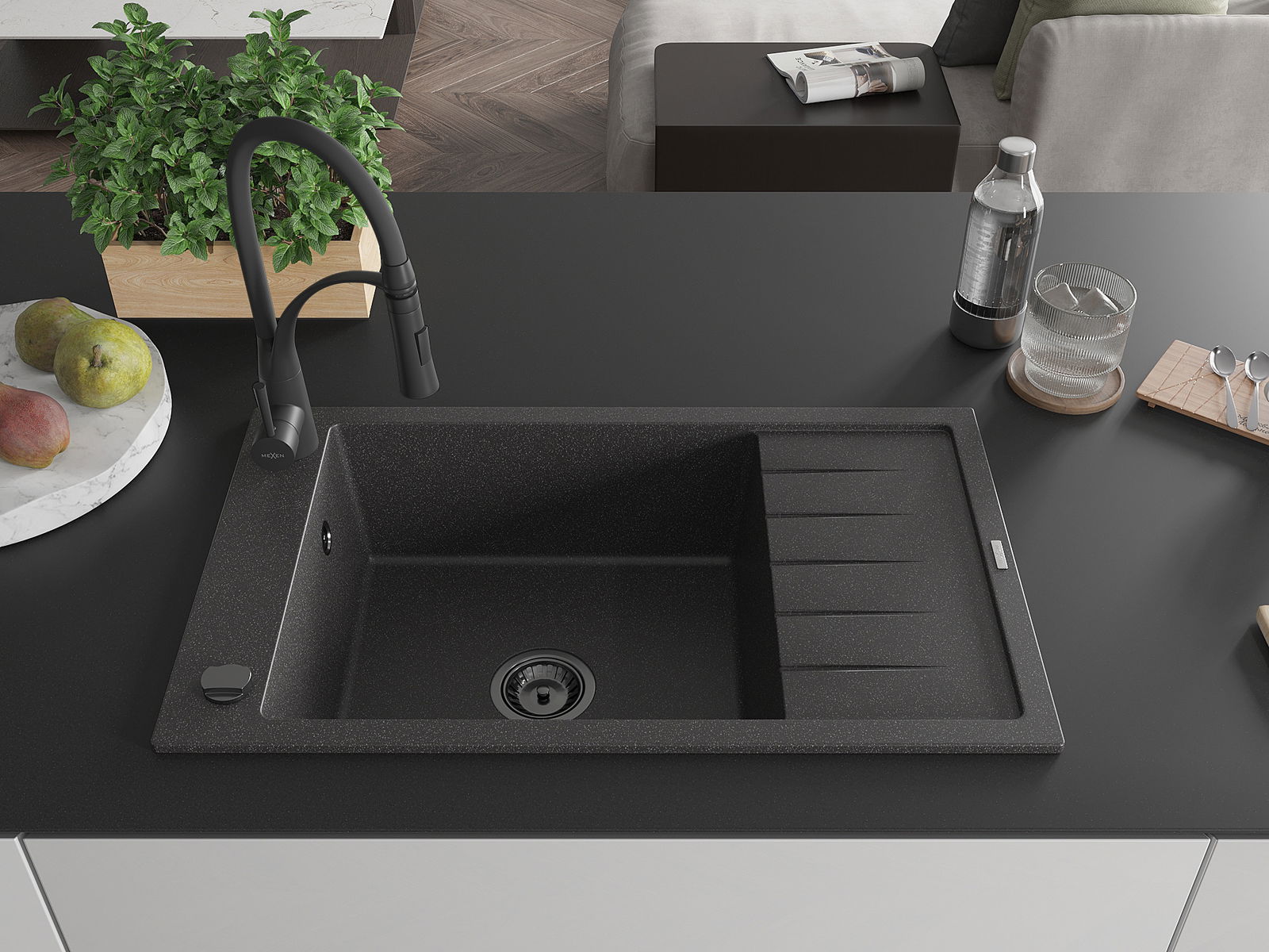 Мивката е направена от висококачествен гранит. Това е елегантно и най -вече практично допълнение към всяка кухня, независимо от нейния стил. Висококачествената и гранитна издръжливост осигуряват много години употреба.