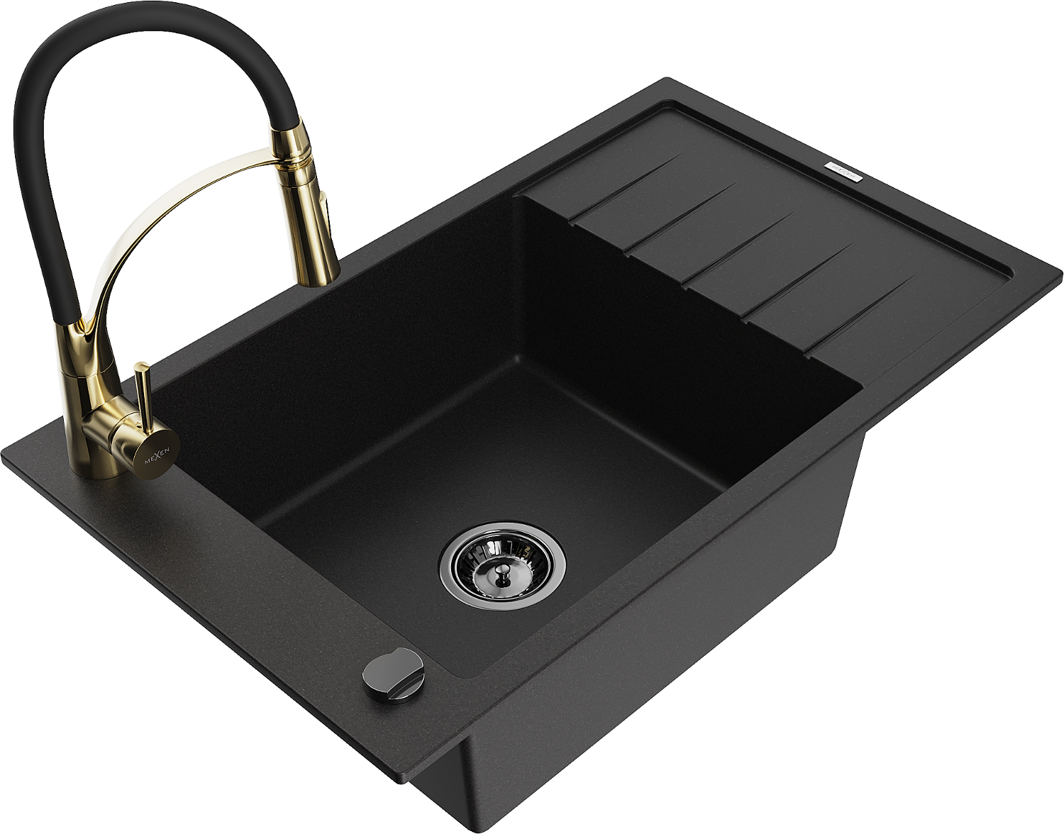 Mexen Elias гранитна мивка с 1 корито с отцедник и кухненски смесител Aster, черен - 6511-77-73450-57-B