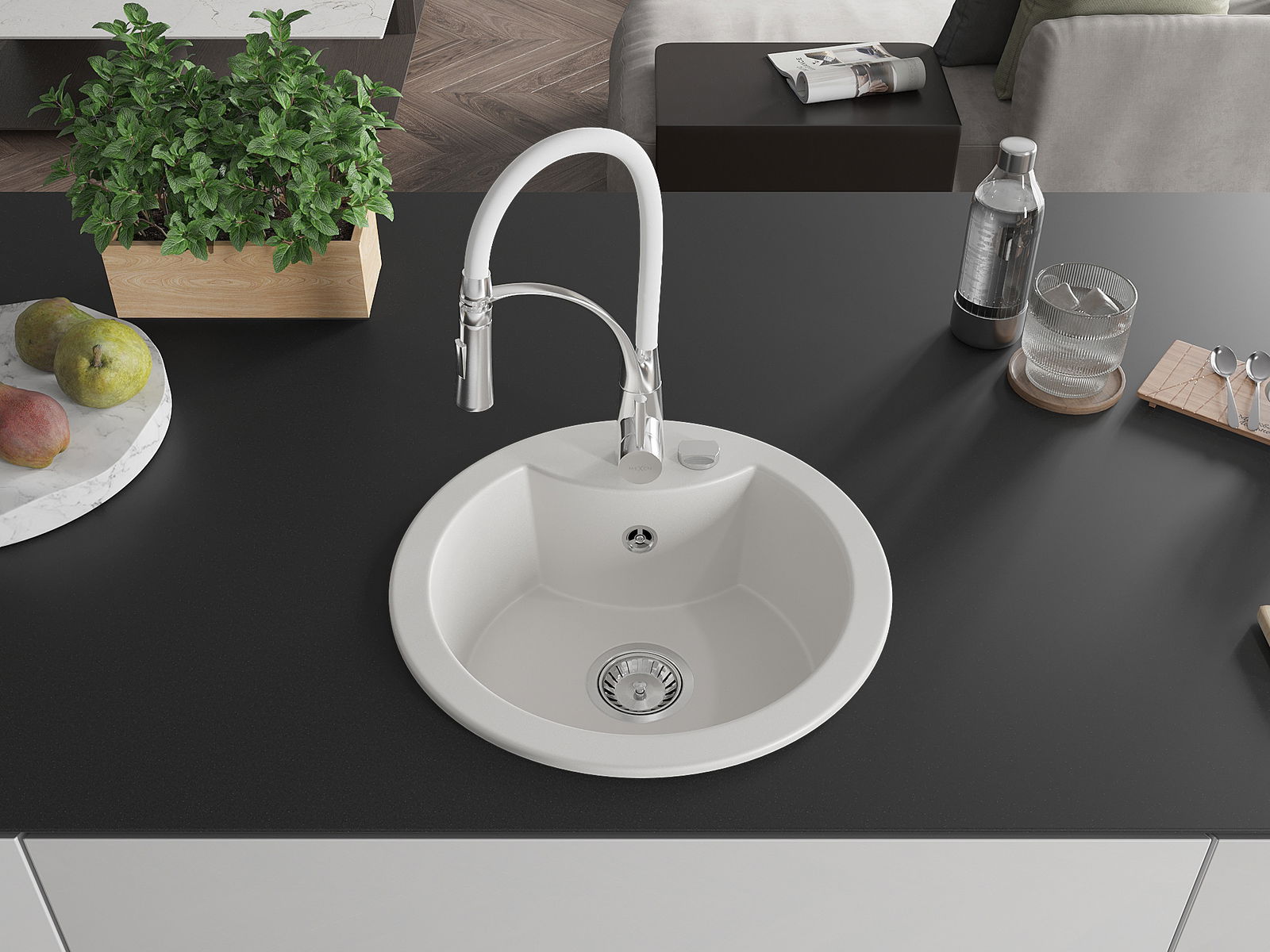 Повърхността на мивката е устойчива на петна и обезцветяване, благодарение на които е лесно да се почиства и запазва цвета си за дълго време. Естетически и практически допълващи всяка кухня.