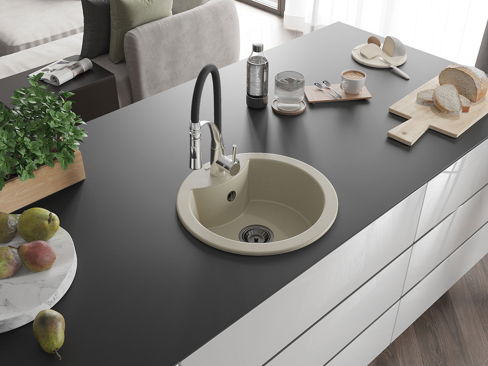Мивката е направена от висококачествен гранит. Това е елегантно и най -вече практично допълнение към всяка кухня, независимо от нейния стил. Висококачествената и гранитна издръжливост осигуряват много години употреба.