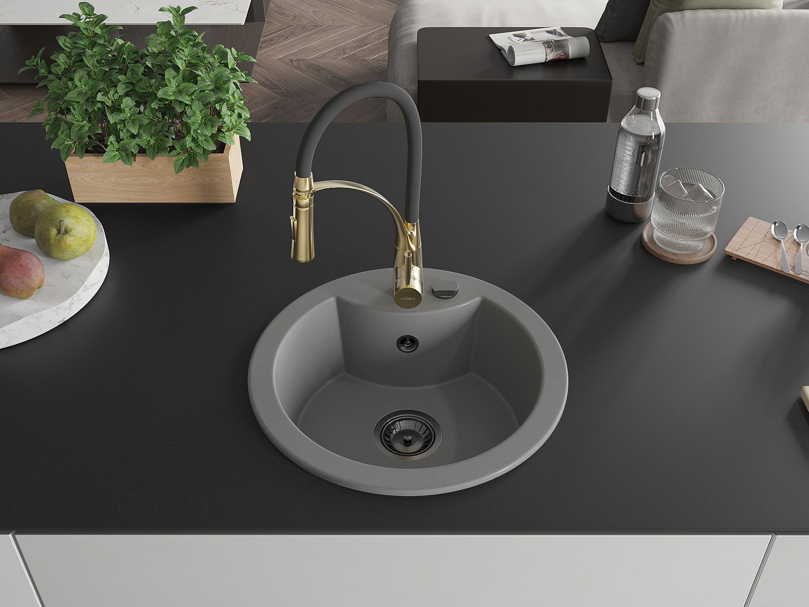 Мивката е направена от висококачествен гранит. Това е елегантно и най -вече практично допълнение към всяка кухня, независимо от нейния стил. Висококачествената и гранитна издръжливост осигуряват много години употреба.