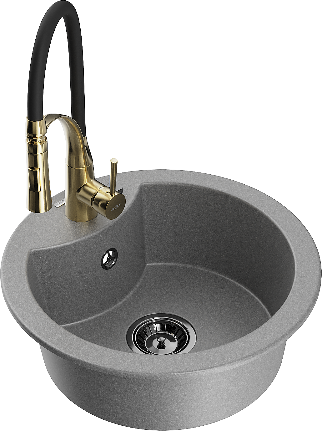 Mexen Diego гранитна мивка с 1 отделение и кухненски смесител Aster, сива - 6512-71-73450-57-B