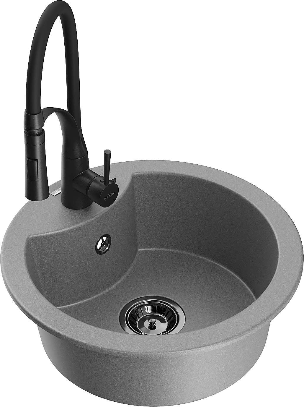 Mexen Diego гранитна кухненска мивка с 1 отделение с кухненски смесител Aster, сив - 6512-71-73450-70-B