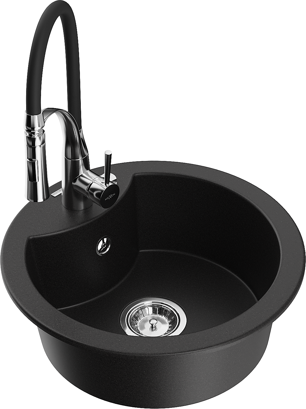 Mexen Diego гранитна мивка с 1 отделение с кухненски смесител Aster, черно - 6512-77-73450-07