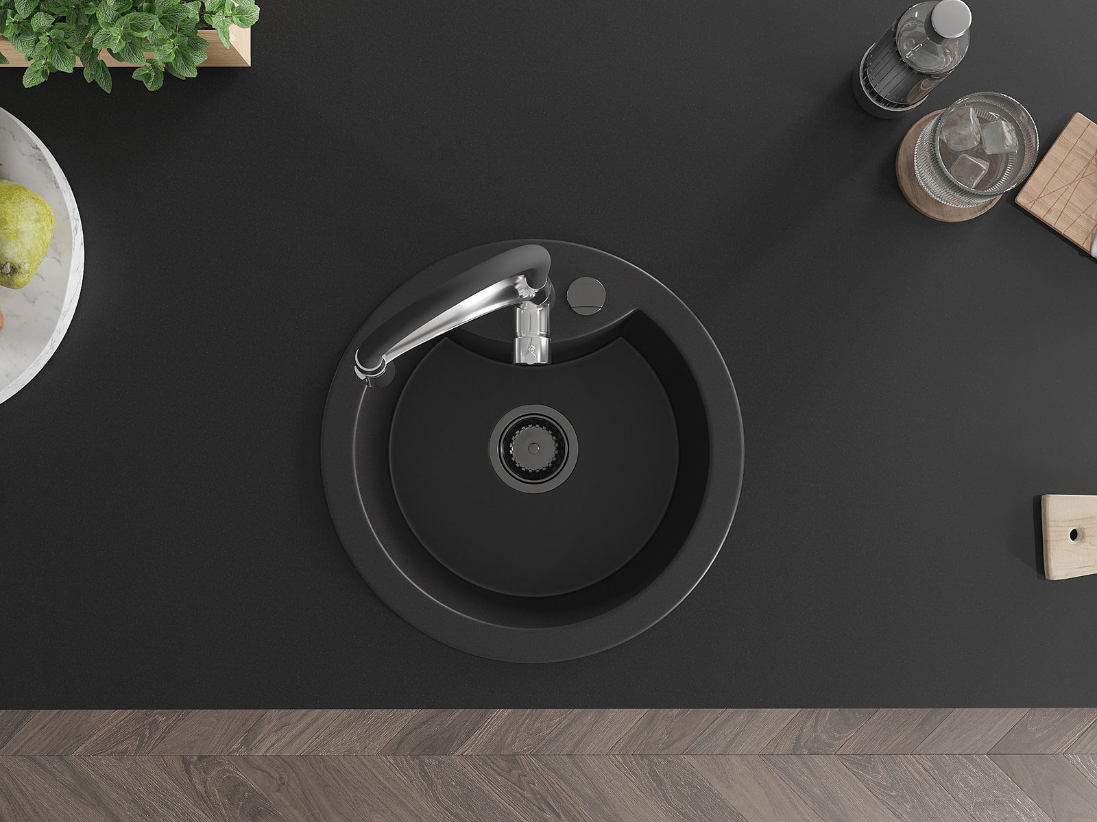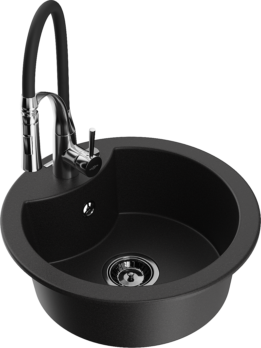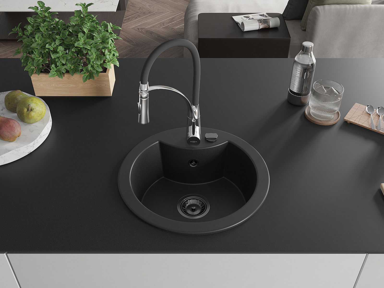 Mexen Diego гранитна мивка с 1 камера и кухненски смесител Aster, черен - 6512-77-73450-07-B