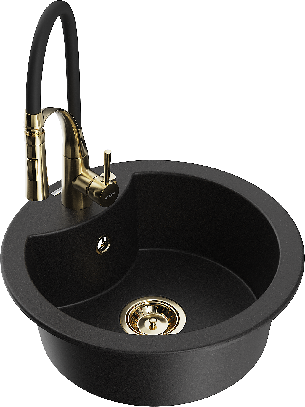 Mexen Diego гранитна кухненска мивка с 1 отделение и кухненски смесител Aster, черен - 6512-77-73450-57-G