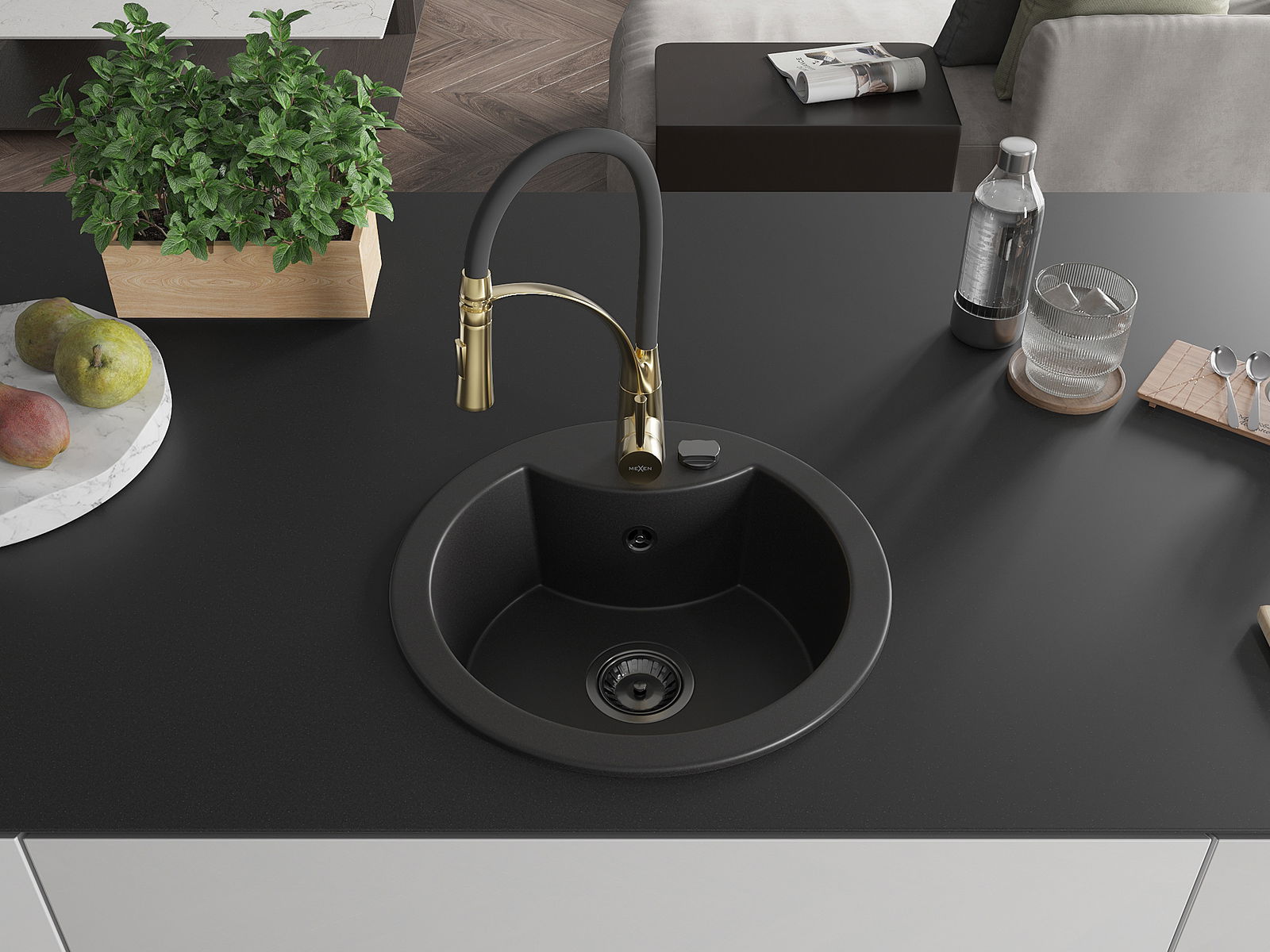 Мивката е направена от висококачествен гранит. Това е елегантно и най -вече практично допълнение към всяка кухня, независимо от нейния стил. Висококачествената и гранитна издръжливост осигуряват много години употреба.