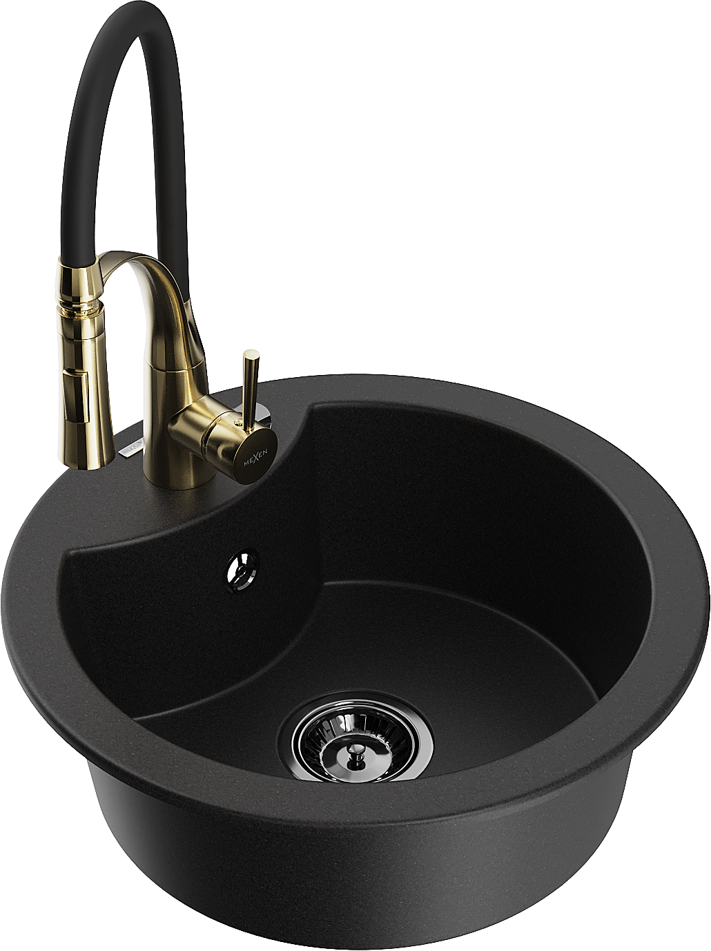 Mexen Diego гранитна мивка с 1 камера и кухненски смесител Aster, черен - 6512-77-73450-57-B