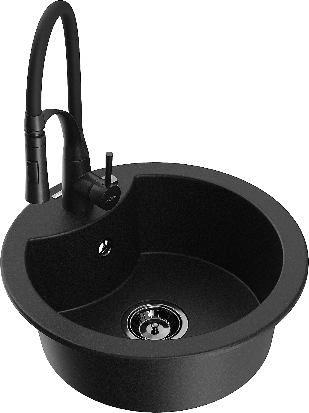 Mexen Diego гранитна мивка с 1 камера с кухненски смесител Aster, черен - 6512-77-73450-70-B