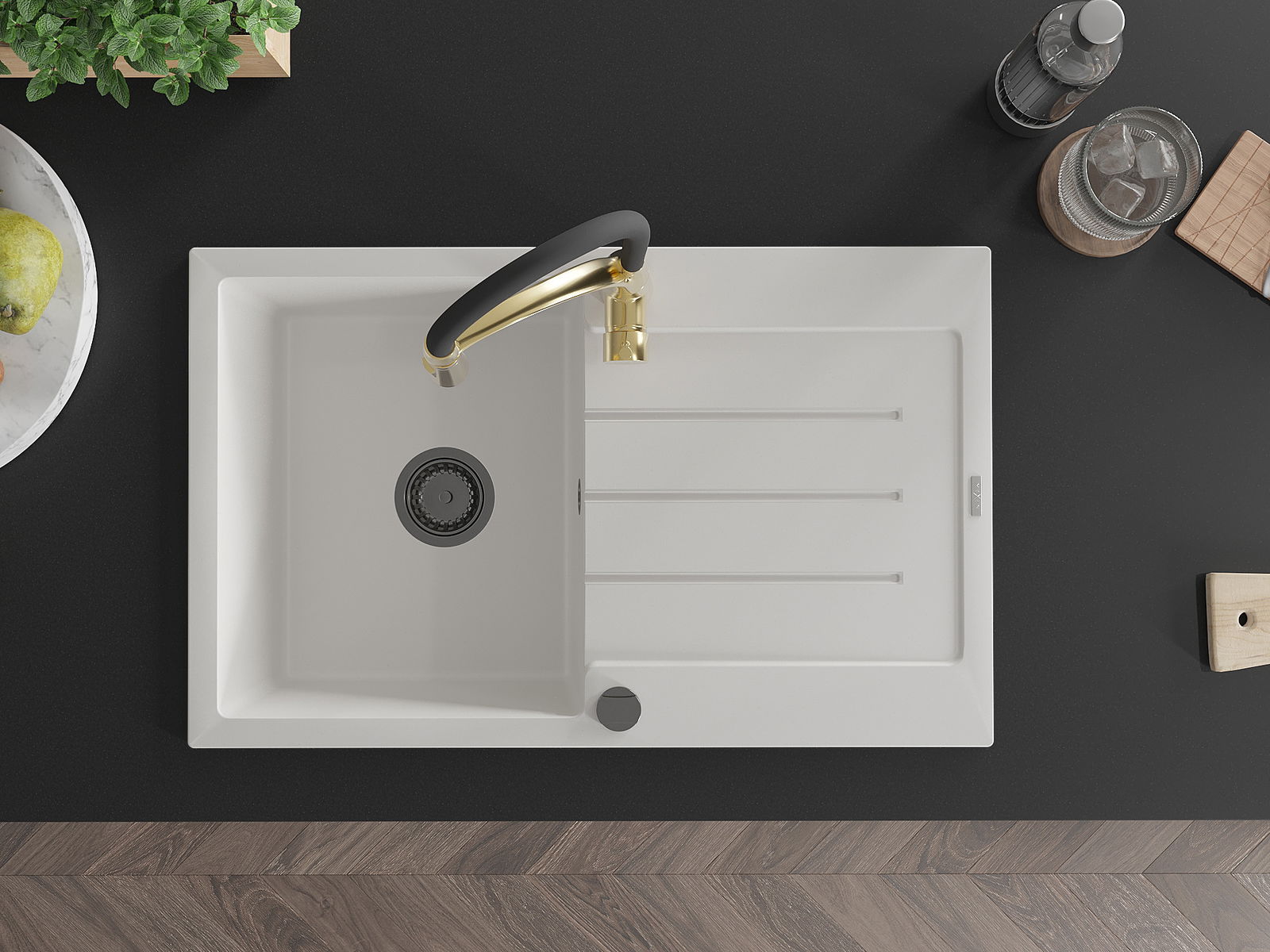 Мивката е направена от висококачествен гранит. Това е елегантно и най -вече практично допълнение към всяка кухня, независимо от нейния стил. Висококачествената и гранитна издръжливост осигуряват много години употреба.
