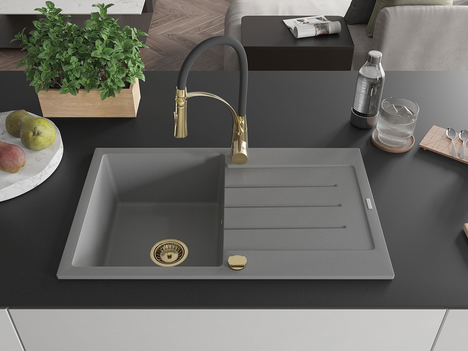 Мивката е направена от висококачествен гранит. Това е елегантно и най -вече практично допълнение към всяка кухня, независимо от нейния стил. Висококачествената и гранитна издръжливост осигуряват много години употреба.