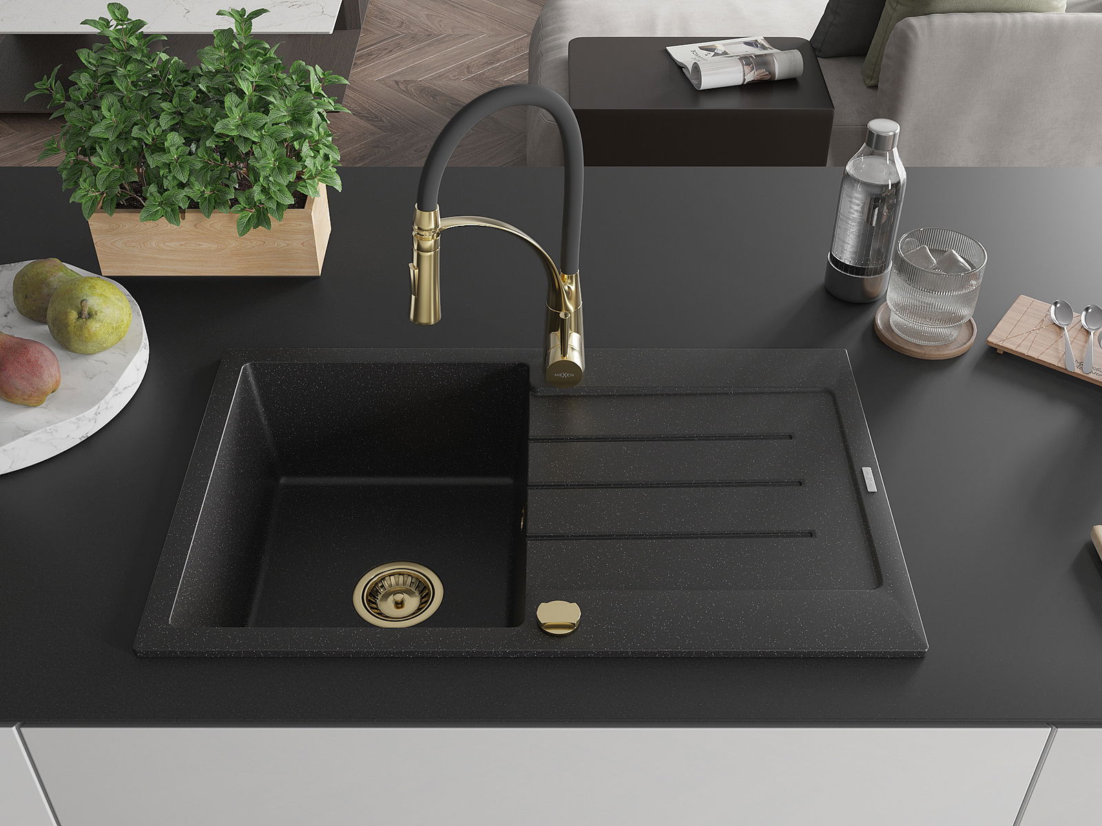 Мивката е направена от висококачествен гранит. Това е елегантно и най -вече практично допълнение към всяка кухня, независимо от нейния стил. Висококачествената и гранитна издръжливост осигуряват много години употреба.