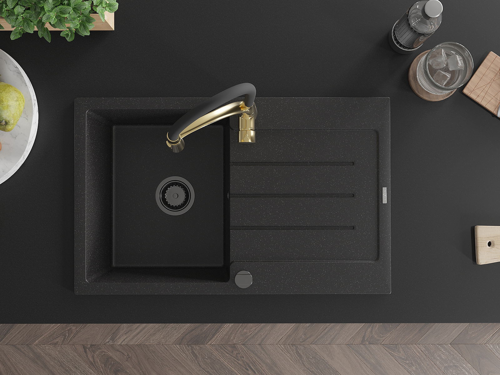 Мивката е направена от висококачествен гранит. Това е елегантно и най -вече практично допълнение към всяка кухня, независимо от нейния стил. Висококачествената и гранитна издръжливост осигуряват много години употреба.