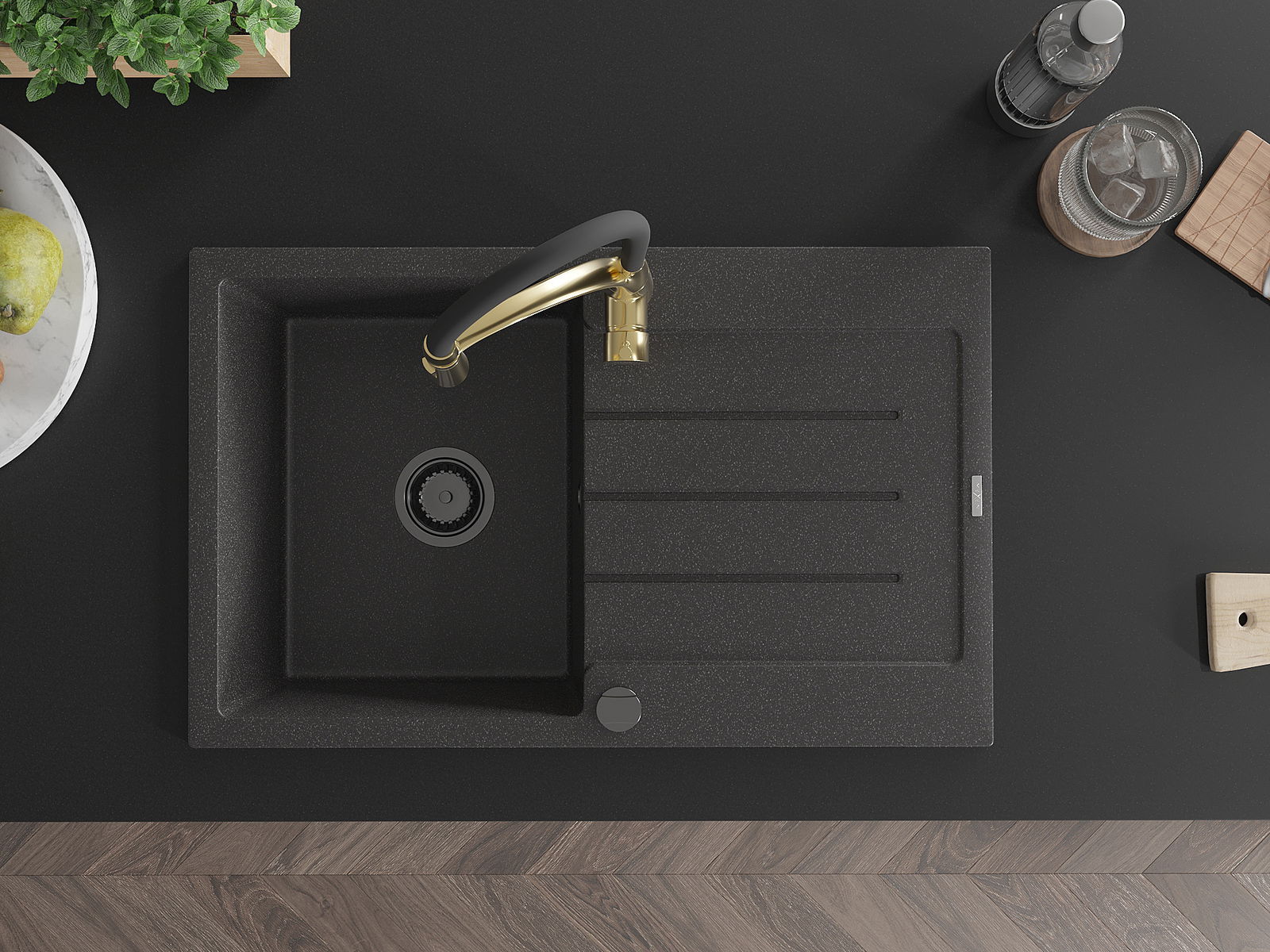 Мивката е направена от висококачествен гранит. Това е елегантно и най -вече практично допълнение към всяка кухня, независимо от нейния стил. Висококачествената и гранитна издръжливост осигуряват много години употреба.