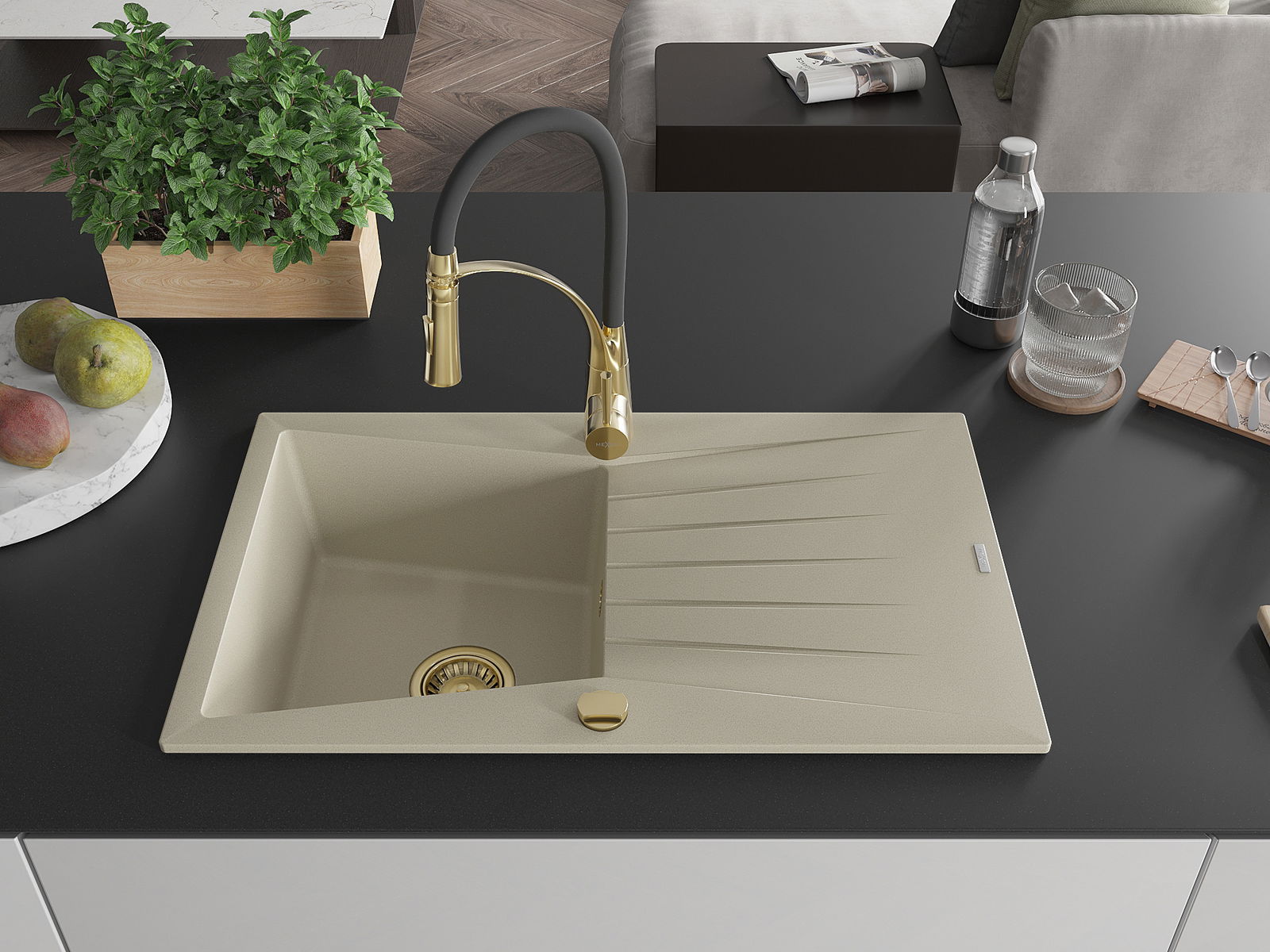 Мивката е направена от висококачествен гранит. Това е елегантно и най -вече практично допълнение към всяка кухня, независимо от нейния стил. Висококачествената и гранитна издръжливост осигуряват много години употреба.