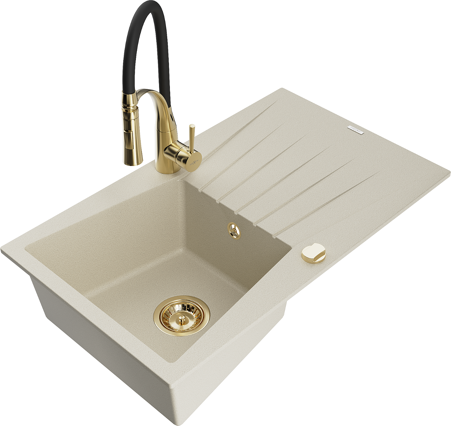 Mexen Cesar гранитна мивка с 1 отделение, с отцедник и кухненски смесител Aster, бежов - 6514-69-73450-57-G